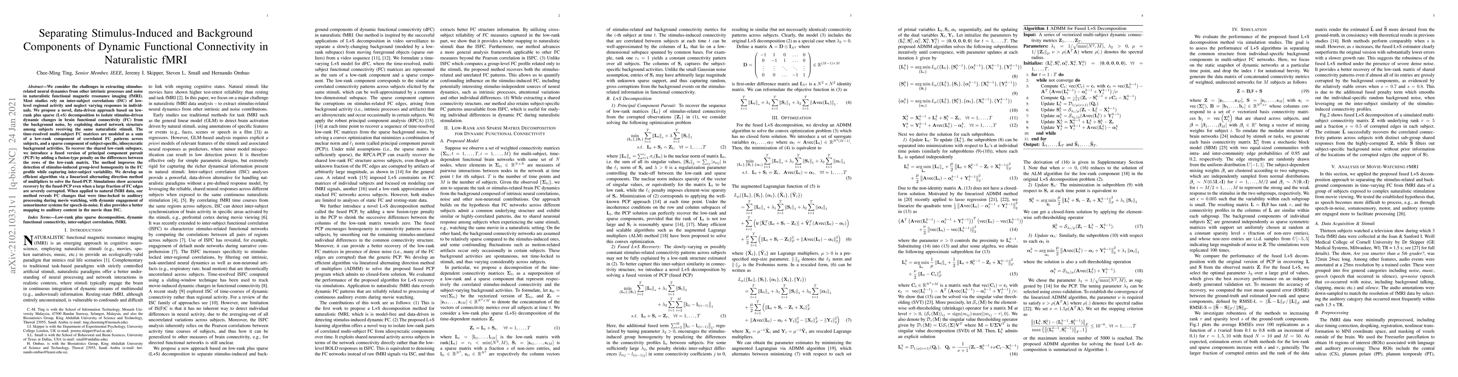 We consider the challenges in extracting stimulus-related neural dynamics from other intrinsic processes and noise in naturalistic functional magnetic resonance imaging (fMRI). Most studies rely on inter-subject correlations (ISC) of low-level regional activity and neglect varying responses in individuals. We propose a novel, data-driven approach based on low-rank plus sparse (L+S) decomposition to isolate stimulus-driven dynamic changes in brain functional connectivity (FC) from the background noise, by exploiting shared network structure among subjects receiving the same naturalistic stimuli. The time-resolved multi-subject FC matrices are modeled as a sum of a low-rank component of correlated FC patterns across subjects, and a sparse component of subject-specific, idiosyncratic background activities. To recover the shared low-rank subspace, we introduce a fused version of principal component pursuit (PCP) by adding a fusion-type penalty on the differences between the rows of the low-rank matrix. The method improves the detection of stimulus-induced group-level homogeneity in the FC profile while capturing inter-subject variability. We develop an efficient algorithm via a linearized alternating direction method of multipliers to solve the fused-PCP. Simulations show accurate recovery by the fused-PCP even when a large fraction of FC edges are severely corrupted. When applied to natural fMRI data, our method reveals FC changes that were time-locked to auditory processing during movie watching, with dynamic engagement of sensorimotor systems for speech-in-noise. It also provides a better mapping to auditory content in the movie than ISC.