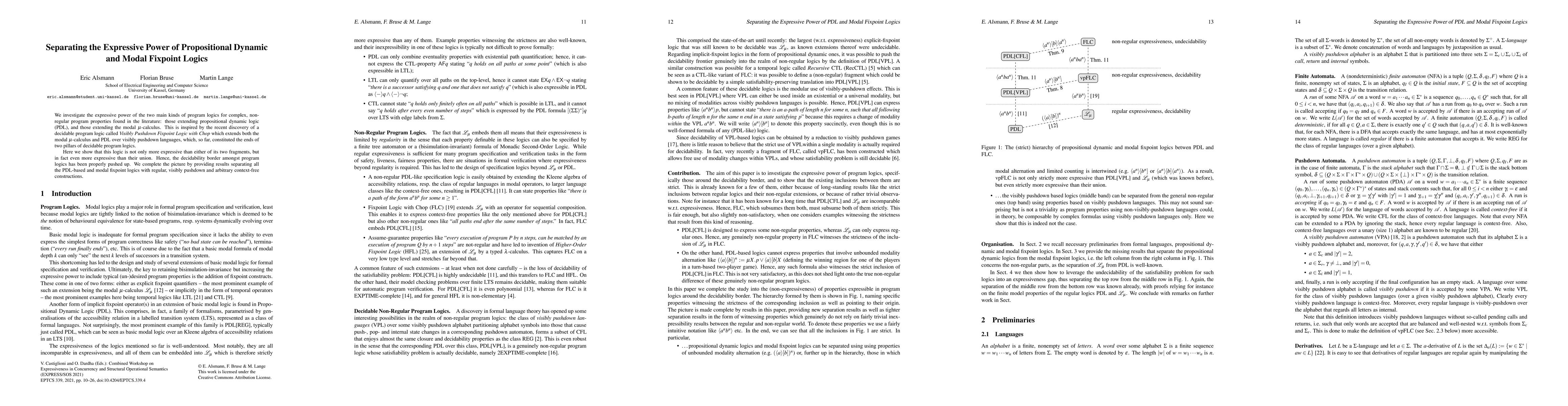We investigate the expressive power of the two main kinds of program logics for complex, non-regular program properties found in the literature: those extending propositional dynamic logic (PDL), and those extending the modal mu-calculus. This is inspired by the recent discovery of a decidable program logic called Visibly Pushdown Fixpoint Logic with Chop which extends both the modal mu-calculus and PDL over visibly pushdown languages, which, so far, constituted the ends of two pillars of decidable program logics. Here we show that this logic is not only more expressive than either of its two fragments, but in fact even more expressive than their union. Hence, the decidability border amongst program logics has been properly pushed up. We complete the picture by providing results separating all the PDL-based and modal fixpoint logics with regular, visibly pushdown and arbitrary context-free constructions.