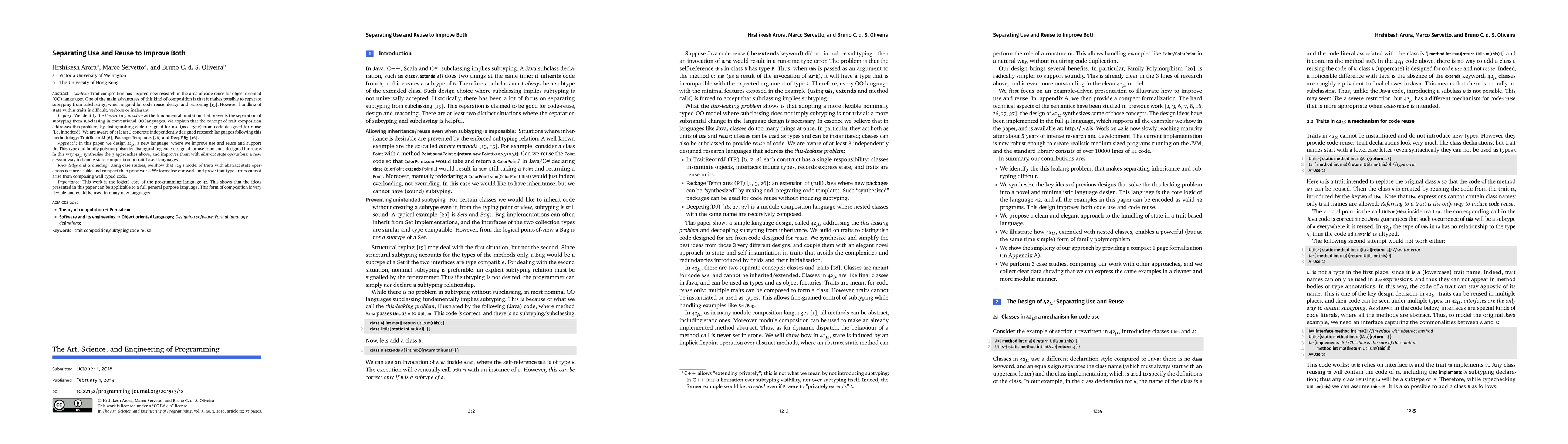 This paper introduces $42_\mu$, a new language that separates code for use and reuse to improve both, addressing the "this-leaking" problem in trait composition. It synthesizes and enhances existing approaches with abstract state operations, demonstrating improved usability and compactness through case studies.