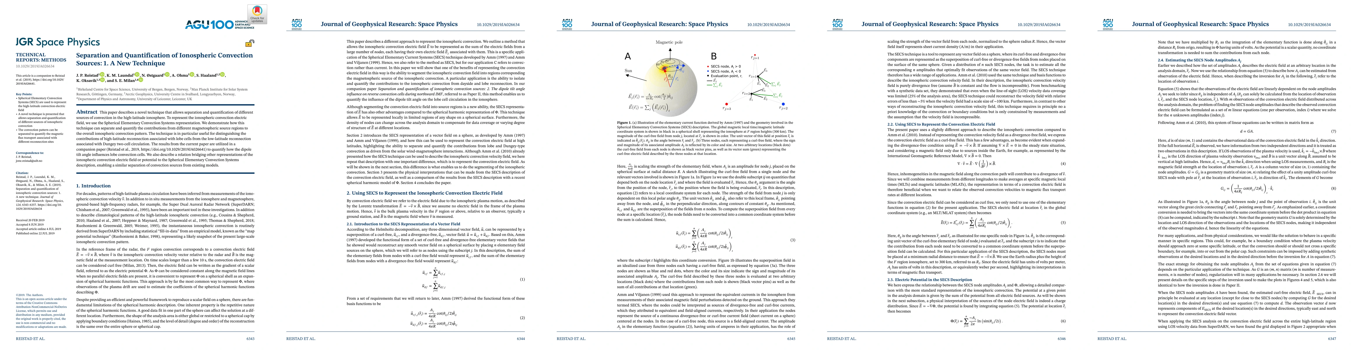 This paper describes a novel technique that allows separation and quantification of different sources of convection in the high-latitude ionosphere. To represent the ionospheric convection electric field, we use the Spherical Elementary Convection Systems representation. We demonstrate how this technique can separate and quantify the contributions from different magnetospheric source regions to the overall ionospheric convection pattern. The technique is in particular useful for distinguishing the contributions of high-latitude reconnection associated with lobe cells from the low-latitude reconnection associated with Dungey two-cell circulation. The results from the current paper are utilized in a companion paper (Reistad et al., 2019, https://doi.org/10.1029/2019JA026641) to quantify how the dipole tilt angle influences lobe convection cells. We also describe a relation bridging other representations of the ionospheric convection electric field or potential to the Spherical Elementary Convection Systems description, enabling a similar separation of convection sources from existing models.