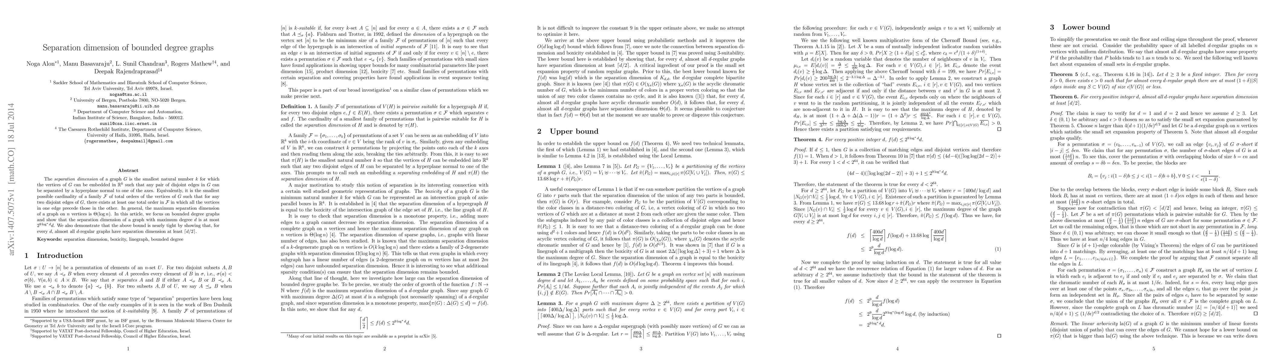 This paper studies separation dimension in bounded degree graphs, finding that a graph with maximum degree d has a separation dimension of at most 2^9 log^* d d, which is nearly tight for almost all d-regular graphs.