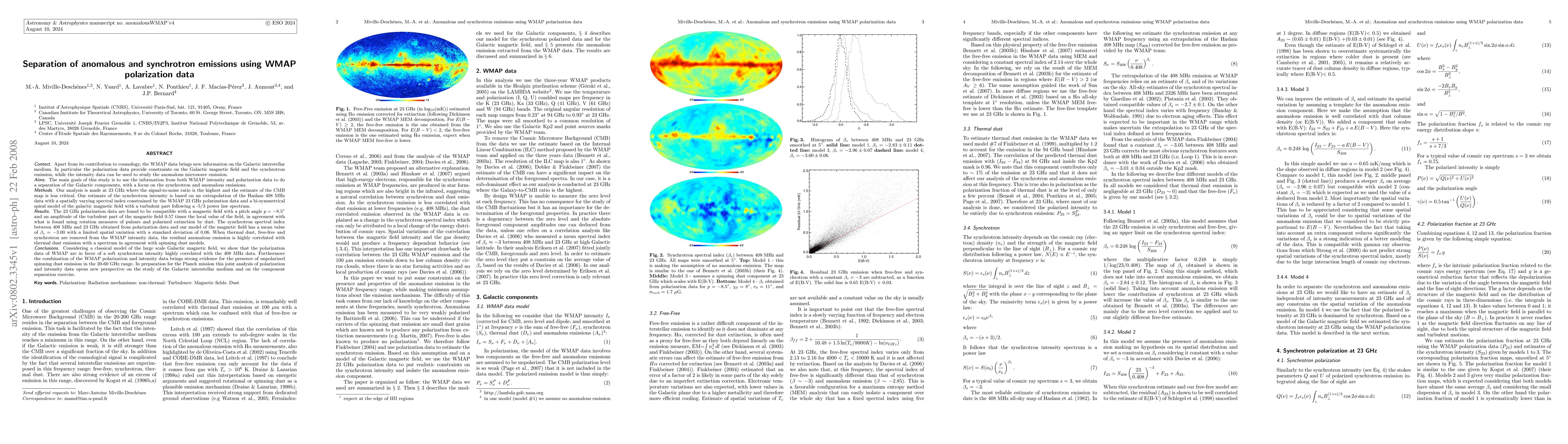 This paper uses WMAP polarization data at 23 GHz to separate Galactic synchrotron and anomalous emissions, finding a synchrotron spectral index of Beta=-3.00±0.06. The study also identifies a significant correlation between residual anomalous emission and thermal dust, supporting spinning dust models.