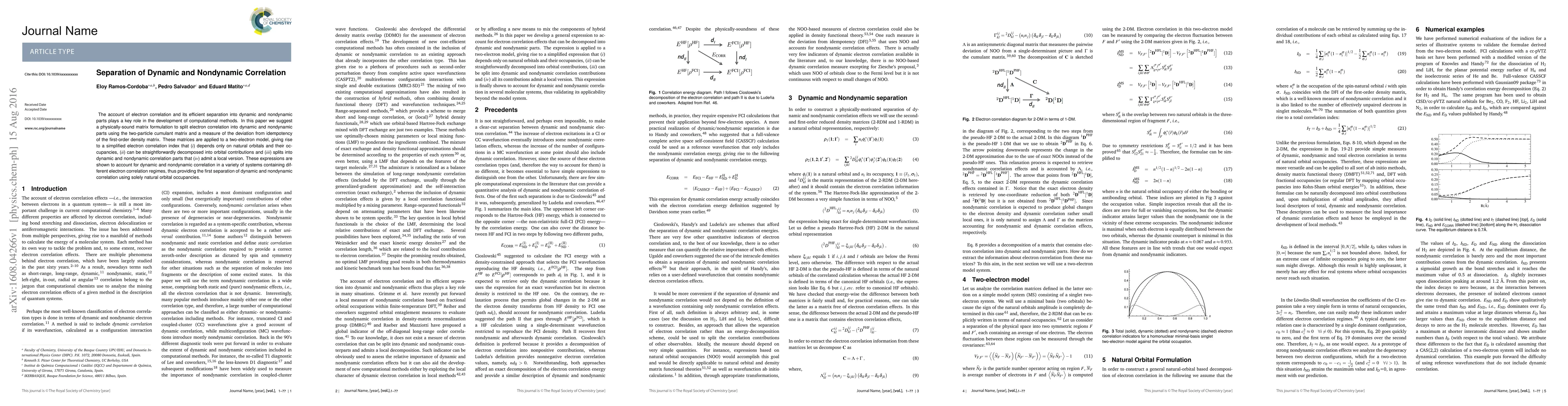 This paper proposes a matrix formulation to separate electron correlation into dynamic and nondynamic parts using natural orbitals and their occupancies. The method provides a simplified correlation index that can be decomposed into orbital contributions and distinguishes between dynamic and nondynamic correlation in various systems.