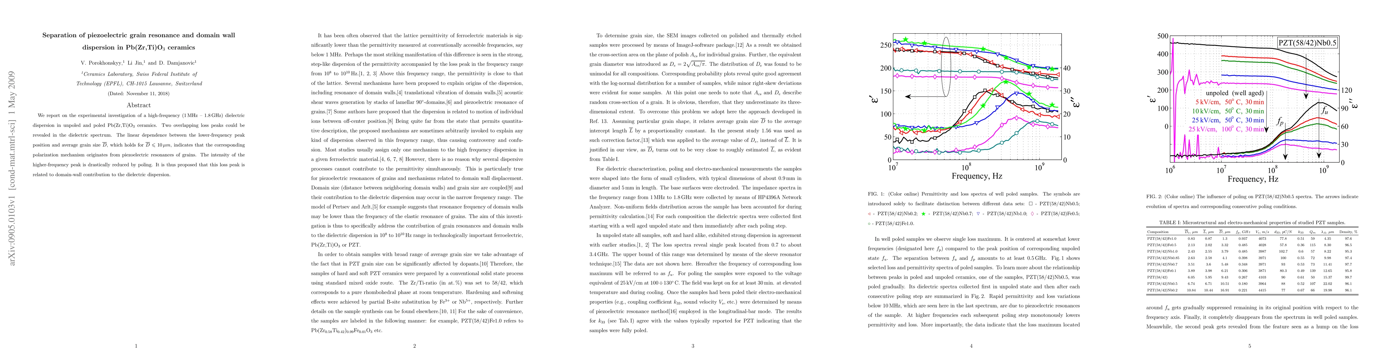 This study investigates high-frequency dielectric dispersion in PZT ceramics, revealing two overlapping loss peaks. The lower-frequency peak correlates with piezoelectric grain resonance, while the higher-frequency peak, significantly reduced by poling, is attributed to domain wall contributions.