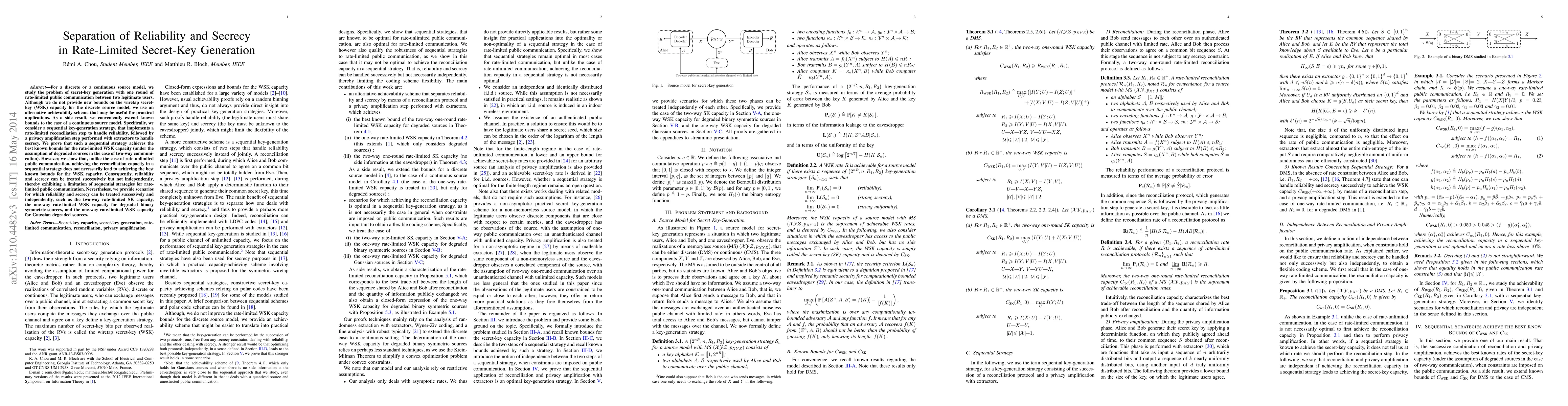 For a discrete or a continuous source model, we study the problem of secret-key generation with one round of rate-limited public communication between two legitimate users. Although we do not provide new bounds on the wiretap secret-key (WSK) capacity for the discrete source model, we use an alternative achievability scheme that may be useful for practical applications. As a side result, we conveniently extend known bounds to the case of a continuous source model. Specifically, we consider a sequential key-generation strategy, that implements a rate-limited reconciliation step to handle reliability, followed by a privacy amplification step performed with extractors to handle secrecy. We prove that such a sequential strategy achieves the best known bounds for the rate-limited WSK capacity (under the assumption of degraded sources in the case of two-way communication). However, we show that, unlike the case of rate-unlimited public communication, achieving the reconciliation capacity in a sequential strategy does not necessarily lead to achieving the best known bounds for the WSK capacity. Consequently, reliability and secrecy can be treated successively but not independently, thereby exhibiting a limitation of sequential strategies for rate-limited public communication. Nevertheless, we provide scenarios for which reliability and secrecy can be treated successively and independently, such as the two-way rate-limited SK capacity, the one-way rate-limited WSK capacity for degraded binary symmetric sources, and the one-way rate-limited WSK capacity for Gaussian degraded sources.