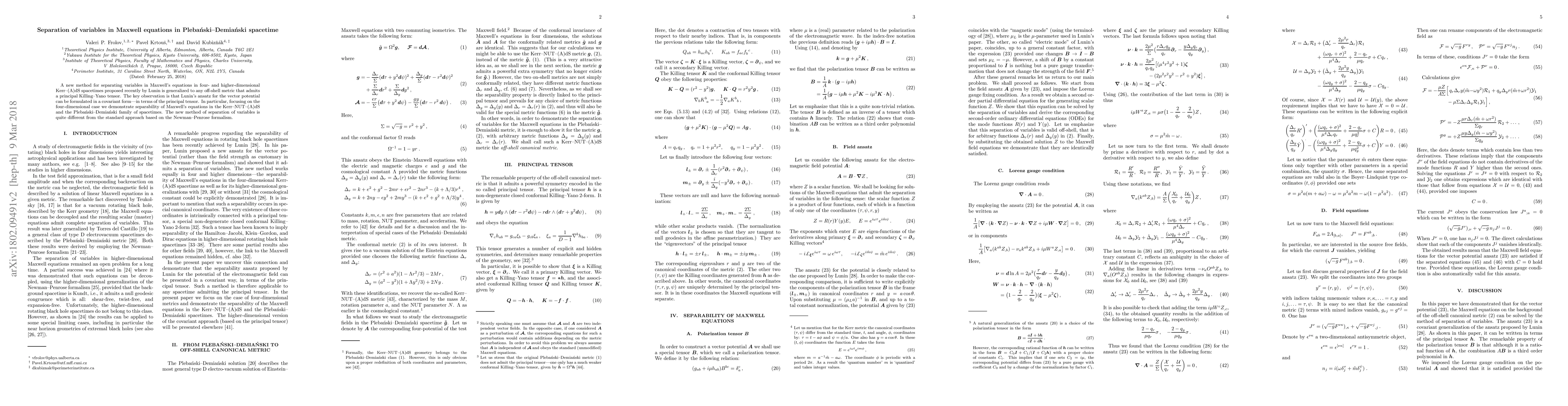 This paper generalizes a new method for separating variables in Maxwell's equations to off-shell metrics with a principal Killing-Yano tensor, focusing on four-dimensional Kerr-NUT-(A)dS and Plebanski-Demianski spacetimes. The key innovation is a covariant formulation of Lunin's ansatz for the vector potential, yielding a method distinct from the traditional Newman-Penrose approach.