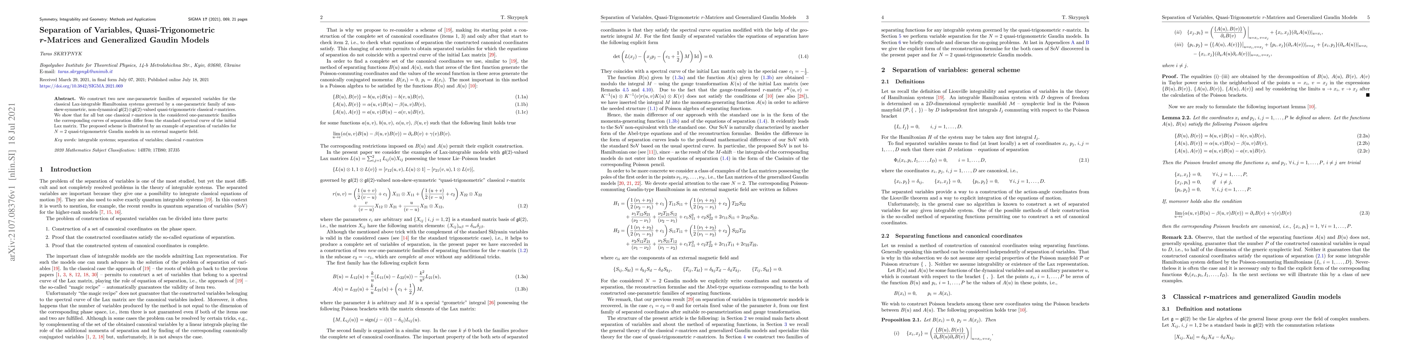 This paper presents new families of separated variables for Lax-integrable Hamiltonian systems using quasi-trigonometric $r$-matrices. It demonstrates that these separations differ from the standard spectral curve, except for one specific $r$-matrix, and exemplifies the method with $N=2$ quasi-trigonometric Gaudin models.