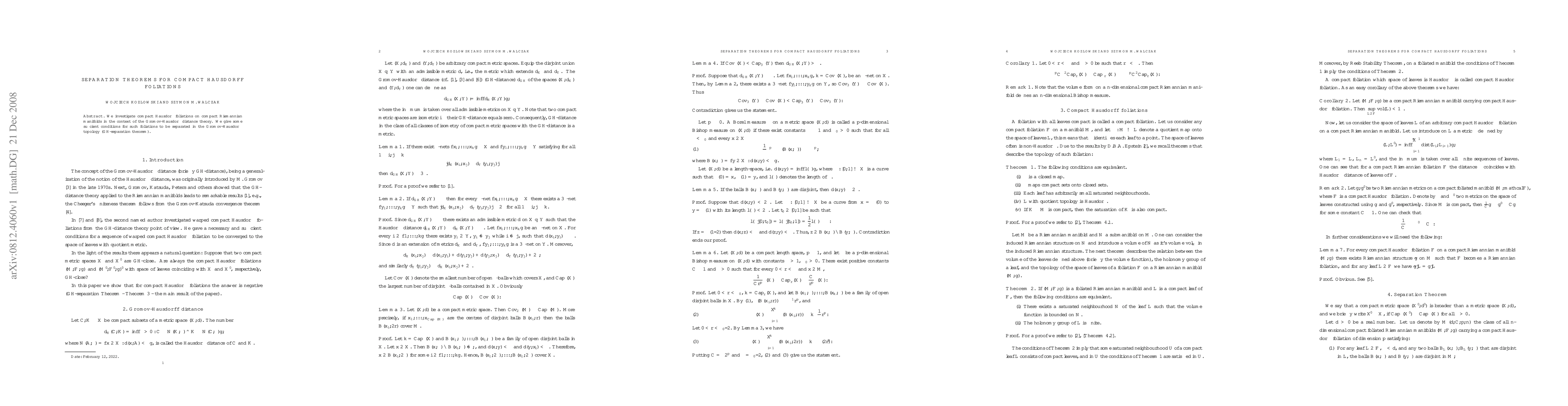 This paper explores the separation properties of compact Hausdorff foliations on compact Riemannian manifolds using Gromov-Hausdorff distance theory, providing sufficient conditions for their separation in this topology.