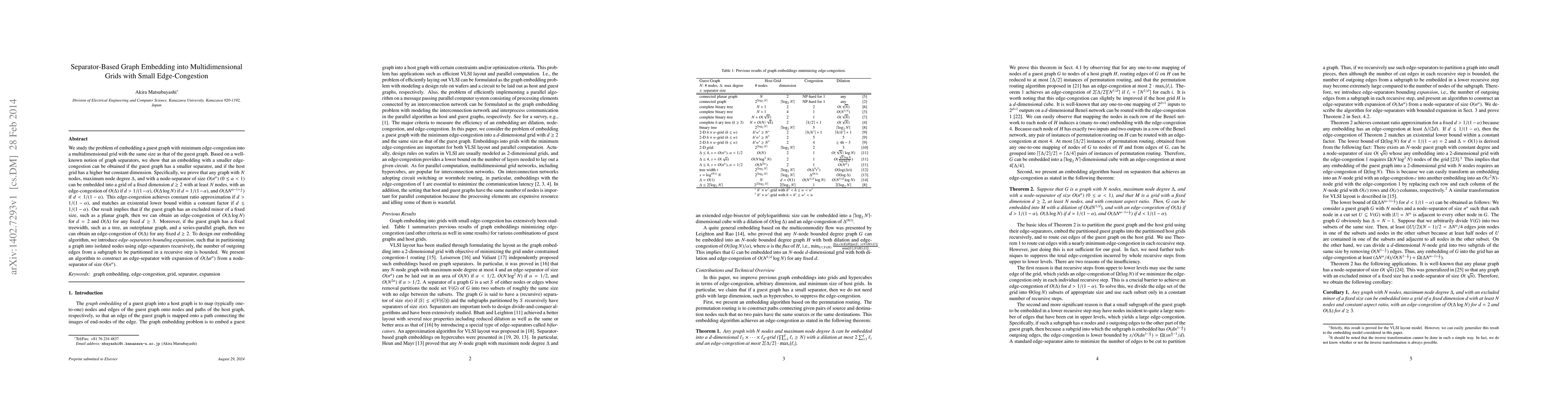 Researchers developed an algorithm to embed a graph with minimal edge congestion into a multidimensional grid, achieving improved performance when the guest graph has smaller separators or higher dimension grids.
