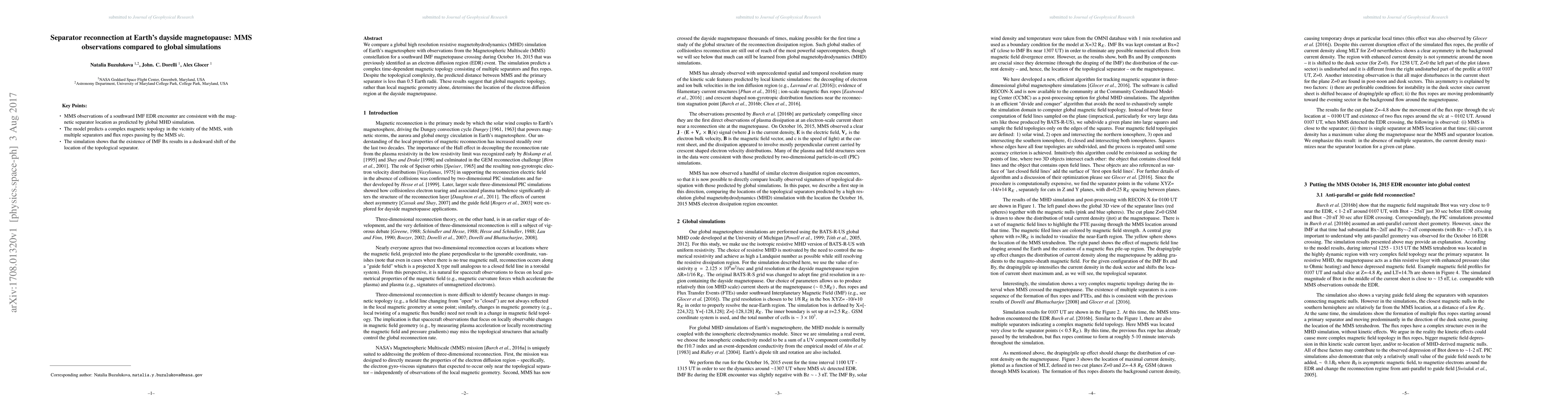 This study compares MMS observations of a southward IMF magnetopause crossing with a global high-resolution resistive MHD simulation, revealing complex magnetic topology and suggesting that global magnetic topology, rather than local geometry, determines the location of the electron diffusion region.