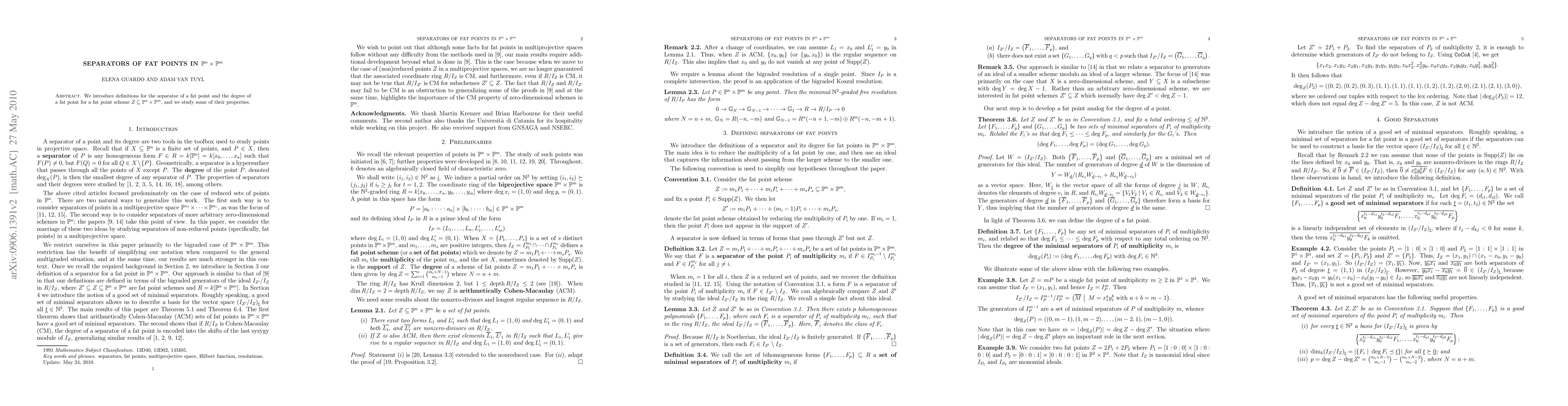 Summary: This paper defines the separator and degree of fat points in the product space P^n x P^m, and explores their properties, contributing to the understanding of fat point schemes in projective geometry.