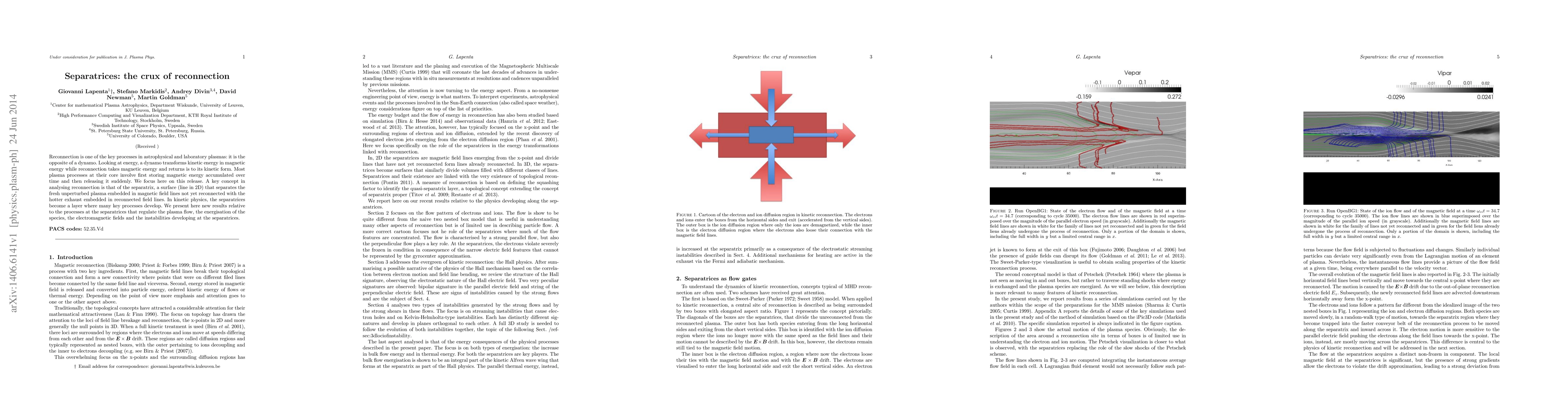 Reconnection is one of the key processes in astrophysical and laboratory plasmas: it is the opposite of a dynamo. Looking at energy, a dynamo transforms kinetic energy in magnetic energy while reconnection takes magnetic energy and returns is to its kinetic form. Most plasma processes at their core involve first storing magnetic energy accumulated over time and then releasing it suddenly. We focus here on this release. A key concept in analysing reconnection is that of the separatrix, a surface (line in 2D) that separates the fresh unperturbed plasma embedded in magnetic field lines not yet reconnected with the hotter exhaust embedded in reconnected field lines. In kinetic physics, the separatrices become a layer where many key processes develop. We present here new results relative to the processes at the separatrices that regulate the plasma flow, the energisation of the species, the electromagnetic fields and the instabilities developing at the separatrices.
