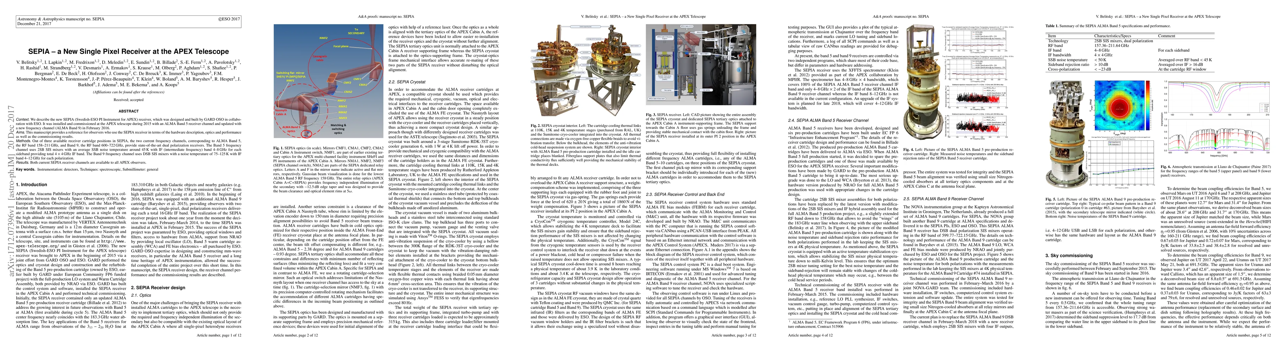 SEPIA is a new single pixel receiver installed at the APEX Telescope, offering state-of-the-art dual polarization receivers in ALMA Band 5 (158-211 GHz) and Band 9 (600-722 GHz) with respective noise temperatures of 45K and 75-125K. It provides detailed hardware and performance descriptions for APEX observers.