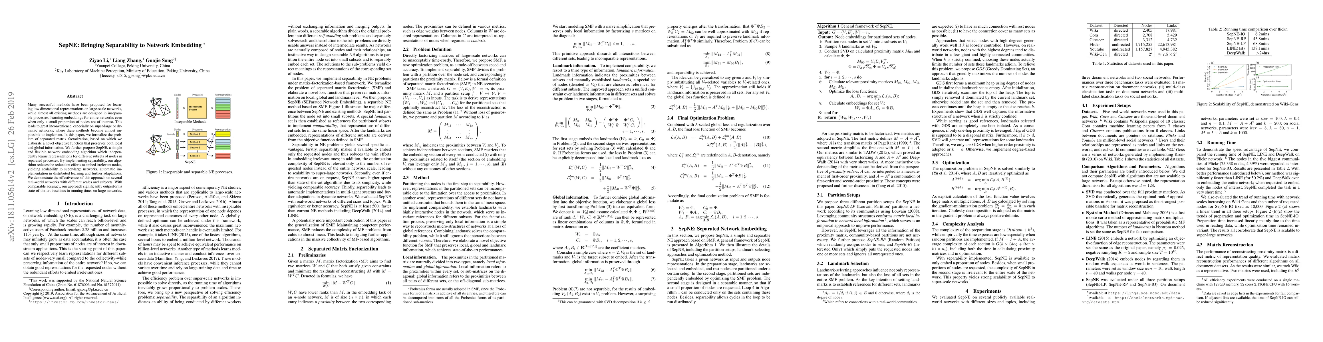 Many successful methods have been proposed for learning low dimensional representations on large-scale networks, while almost all existing methods are designed in inseparable processes, learning embeddings for entire networks even when only a small proportion of nodes are of interest. This leads to great inconvenience, especially on super-large or dynamic networks, where these methods become almost impossible to implement. In this paper, we formalize the problem of separated matrix factorization, based on which we elaborate a novel objective function that preserves both local and global information. We further propose SepNE, a simple and flexible network embedding algorithm which independently learns representations for different subsets of nodes in separated processes. By implementing separability, our algorithm reduces the redundant efforts to embed irrelevant nodes, yielding scalability to super-large networks, automatic implementation in distributed learning and further adaptations. We demonstrate the effectiveness of this approach on several real-world networks with different scales and subjects. With comparable accuracy, our approach significantly outperforms state-of-the-art baselines in running times on large networks.