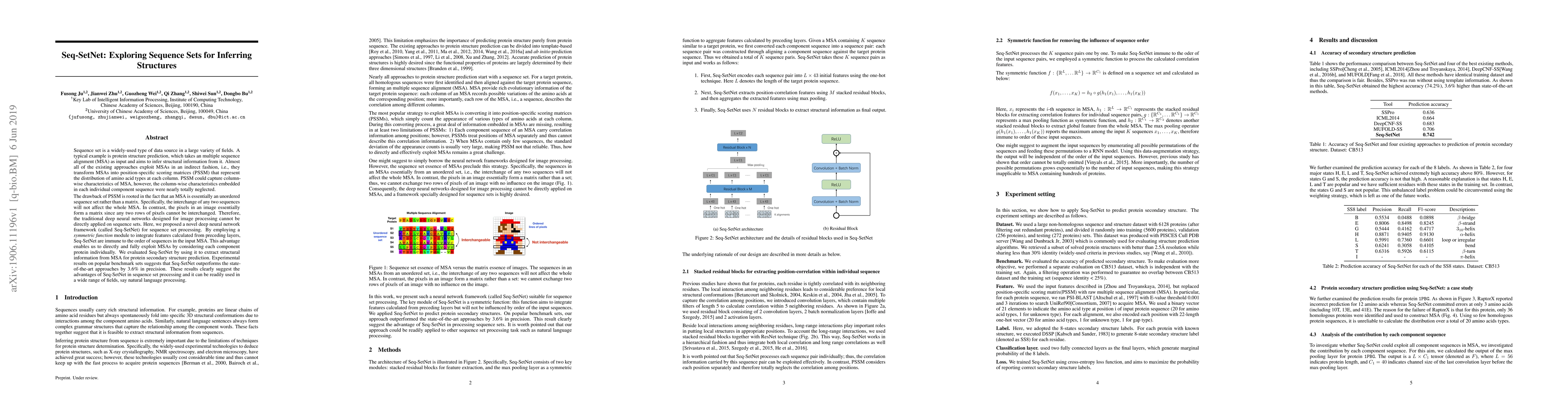 Seq-SetNet is a novel deep neural network framework designed to process sequence sets, such as multiple sequence alignments (MSAs), by fully exploiting individual component sequences. This approach outperforms existing methods by 3.6% in precision for protein secondary structure prediction, demonstrating its effectiveness in sequence set processing.