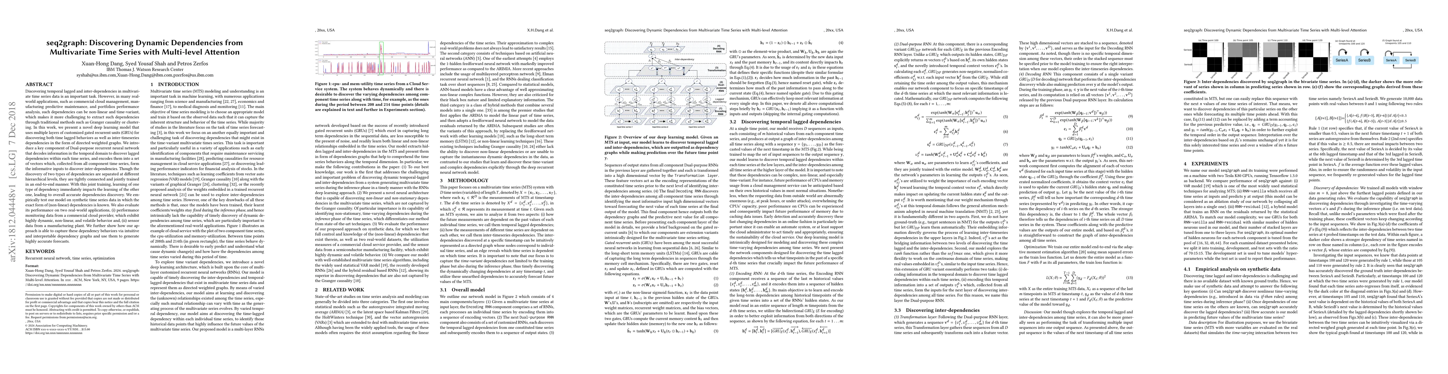This paper introduces a deep learning model, seq2graph, that employs multi-level attention and gated recurrent units to discover dynamic, non-linear dependencies in multivariate time series data. The model captures both temporal lagged and inter-timeseries dependencies through an end-to-end training process, demonstrating effectiveness in real-world applications like cloud management and manufacturing predictive maintenance.