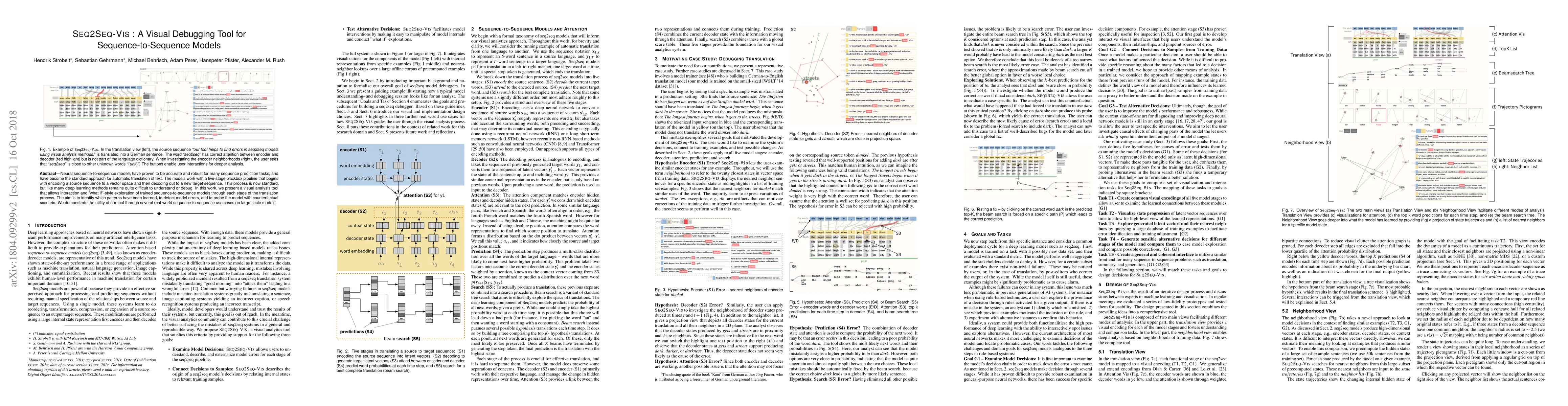Neural Sequence-to-Sequence models have proven to be accurate and robust for many sequence prediction tasks, and have become the standard approach for automatic translation of text. The models work in a five stage blackbox process that involves encoding a source sequence to a vector space and then decoding out to a new target sequence. This process is now standard, but like many deep learning methods remains quite difficult to understand or debug. In this work, we present a visual analysis tool that allows interaction with a trained sequence-to-sequence model through each stage of the translation process. The aim is to identify which patterns have been learned and to detect model errors. We demonstrate the utility of our tool through several real-world large-scale sequence-to-sequence use cases.