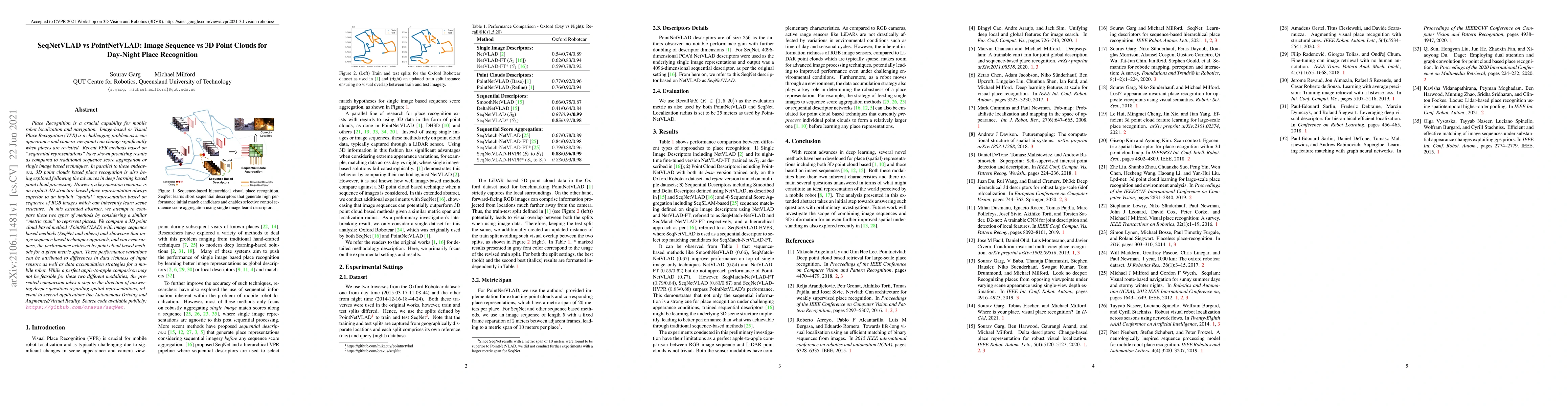 This paper compares 3D point cloud based place recognition (PointNetVLAD) with image sequence based methods (SeqNetVLAD) for mobile robot localization. It finds that image sequence techniques can outperform 3D point cloud methods for certain conditions, highlighting the importance of data richness and accumulation strategies in mobile robot applications.