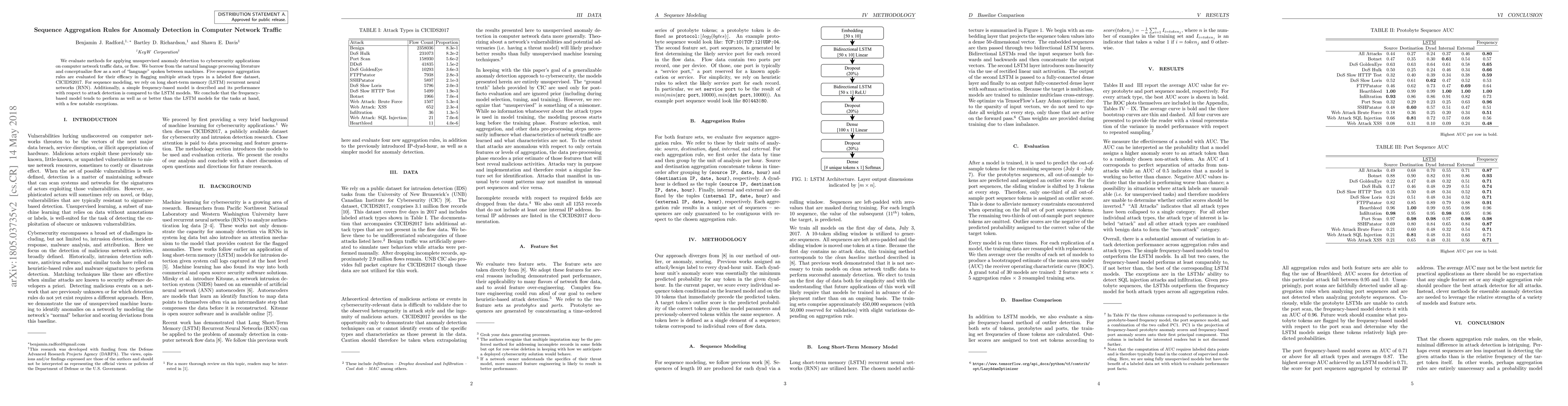 We evaluate methods for applying unsupervised anomaly detection to cybersecurity applications on computer network traffic data, or flow. We borrow from the natural language processing literature and conceptualize flow as a sort of "language" spoken between machines. Five sequence aggregation rules are evaluated for their efficacy in flagging multiple attack types in a labeled flow dataset, CICIDS2017. For sequence modeling, we rely on long short-term memory (LSTM) recurrent neural networks (RNN). Additionally, a simple frequency-based model is described and its performance with respect to attack detection is compared to the LSTM models. We conclude that the frequency-based model tends to perform as well as or better than the LSTM models for the tasks at hand, with a few notable exceptions.