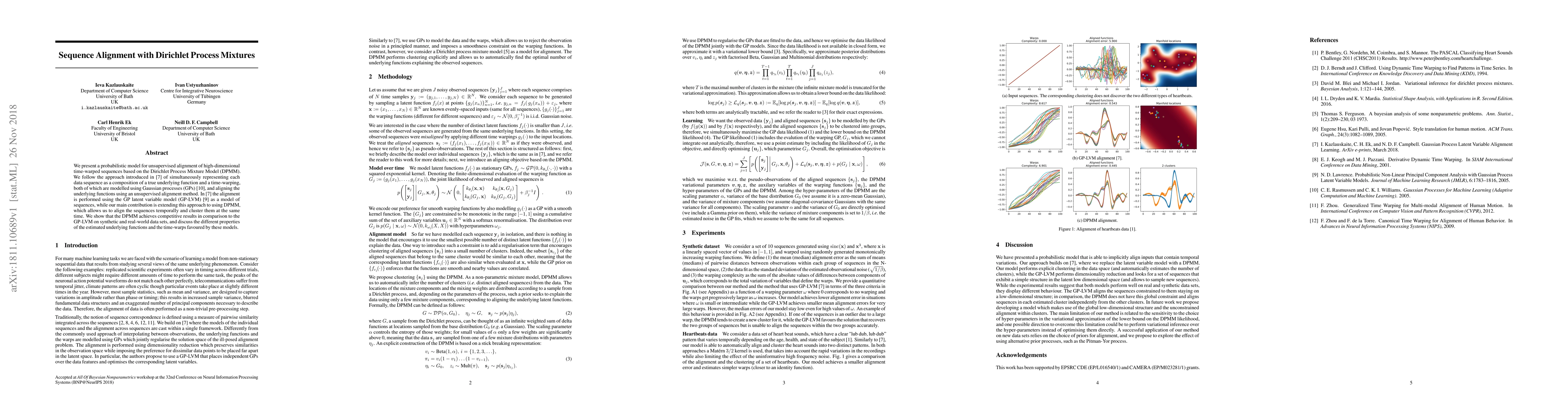 A new probabilistic model uses Dirichlet Process Mixture Models to align high-dimensional time-warped sequences, achieving competitive results with existing methods on synthetic and real-world data sets.