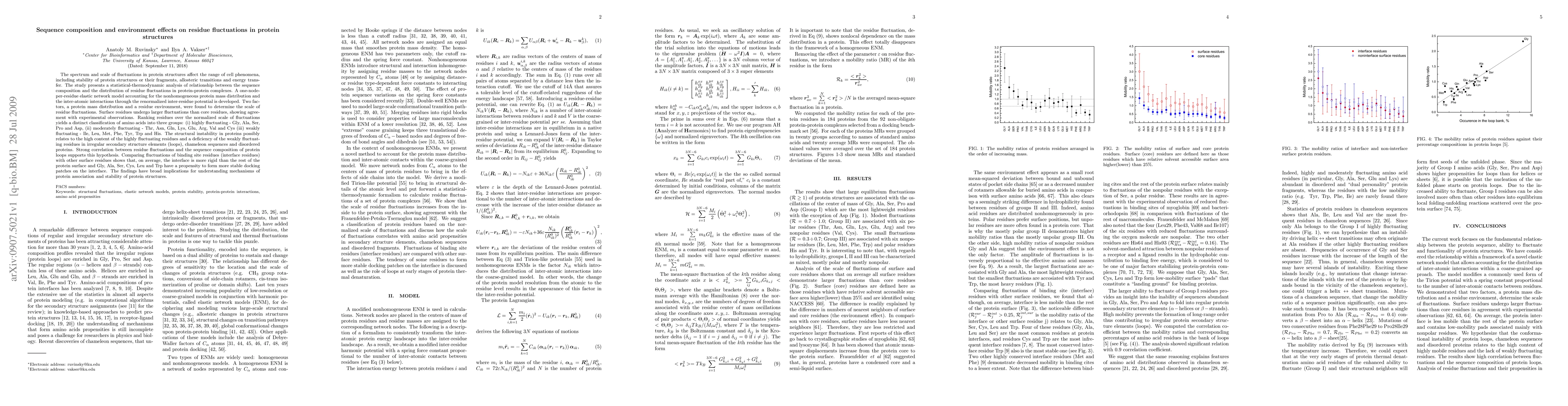 This research introduces a novel approach to understanding protein structure stability and association mechanisms by linking sequence composition with residue fluctuations, providing a distinct classification of amino acids based on their mobility.