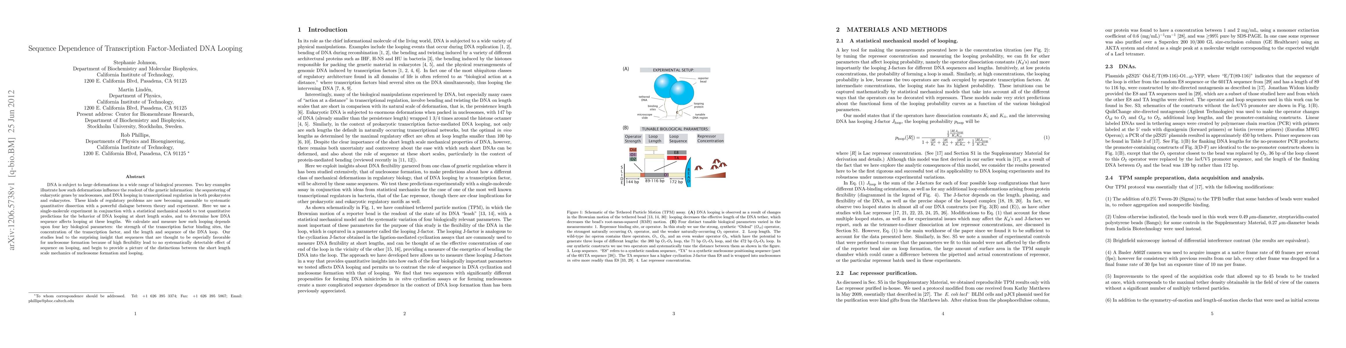 This research combines single-molecule experiments and statistical mechanics to explore how DNA sequence affects transcription factor-mediated DNA looping, finding that high flexibility sequences, previously thought favorable for nucleosome formation, do not influence looping. It reveals distinctions between nucleosome formation and looping mechanics at short length scales.