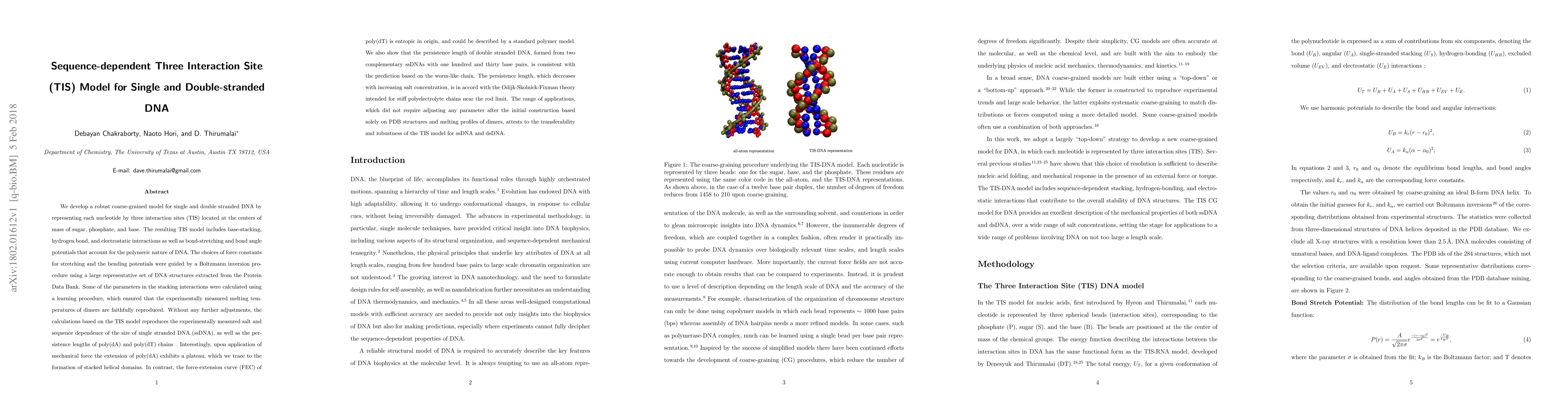 We develop a robust coarse-grained model for single and double stranded DNA by representing each nucleotide by three interaction sites (TIS) located at the centers of mass of sugar, phosphate, and base. The resulting TIS model includes base-stacking, hydrogen bond, and electrostatic interactions as well as bond-stretching and bond angle potentials that account for the polymeric nature of DNA. The choices of force constants for stretching and the bending potentials were guided by a Boltzmann inversion procedure using a large representative set of DNA structures extracted from the Protein Data Bank. Some of the parameters in the stacking interactions were calculated using a learning procedure, which ensured that the experimentally measured melting temperatures of dimers are faithfully reproduced. Without any further adjustments, the calculations based on the TIS model reproduces the experimentally measured salt and sequence dependence of the size of single stranded DNA (ssDNA), as well as the persistence lengths of poly(dA) and poly(dT) chains. Interestingly, upon application of mechanical force the extension of poly(dA) exhibits a plateau, which we trace to the formation of stacked helical domains. In contrast, the force-extension curve (FEC) of poly(dT) is entropic in origin, and could be described by a standard polymer model. We also show that the persistence length of double stranded DNA is consistent with the prediction based on the worm-like chain. The persistence length, which decreases with increasing salt concentration, is in accord with the Odijk-Skolnick-Fixman theory intended for stiff polyelectrolyte chains near the rod limit. The range of applications, which did not require adjusting any parameter after the initial construction based solely on PDB structures and melting profiles of dimers, attests to the transferability and robustness of the TIS model for ssDNA and dsDNA.