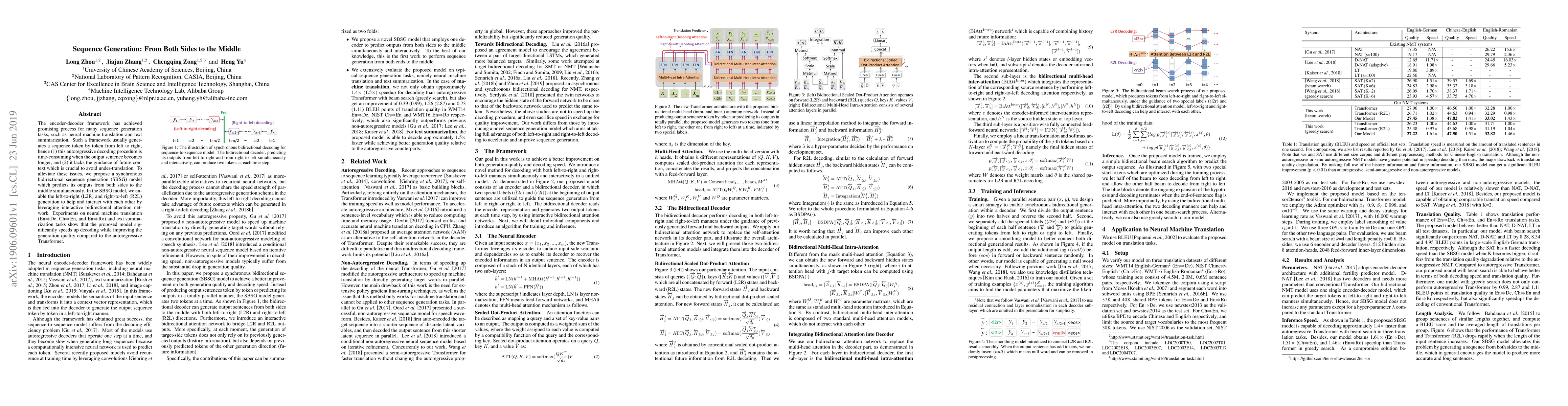 A new model, Synchronous Bidirectional Sequence Generation (SBSG), speeds up sequence generation tasks like translation and text summarization by predicting outputs from both sides of the middle simultaneously.