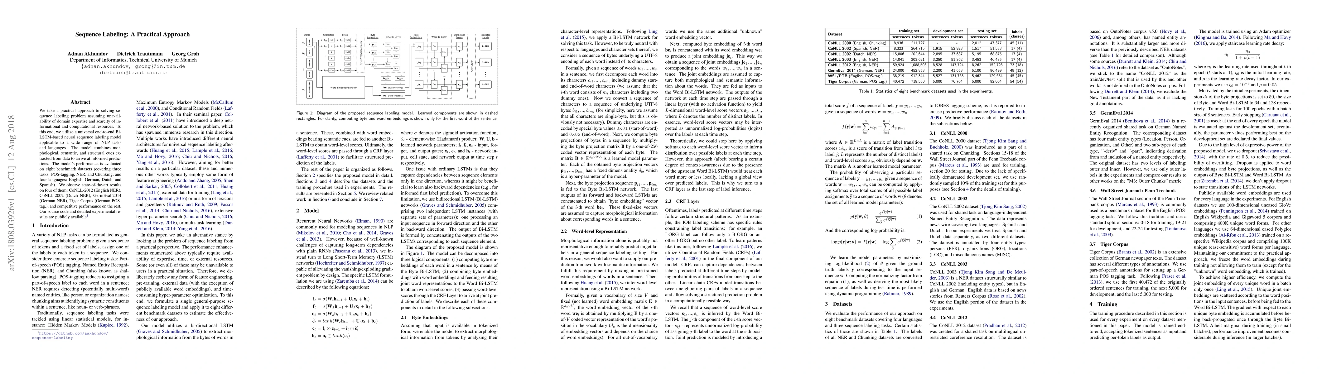 This paper presents a practical Bi-LSTM-based neural sequence labeling model that achieves state-of-the-art results on four benchmark datasets for POS-tagging and NER across multiple languages, leveraging minimal domain expertise and limited resources. The model integrates morphological, semantic, and structural data cues for effective prediction.