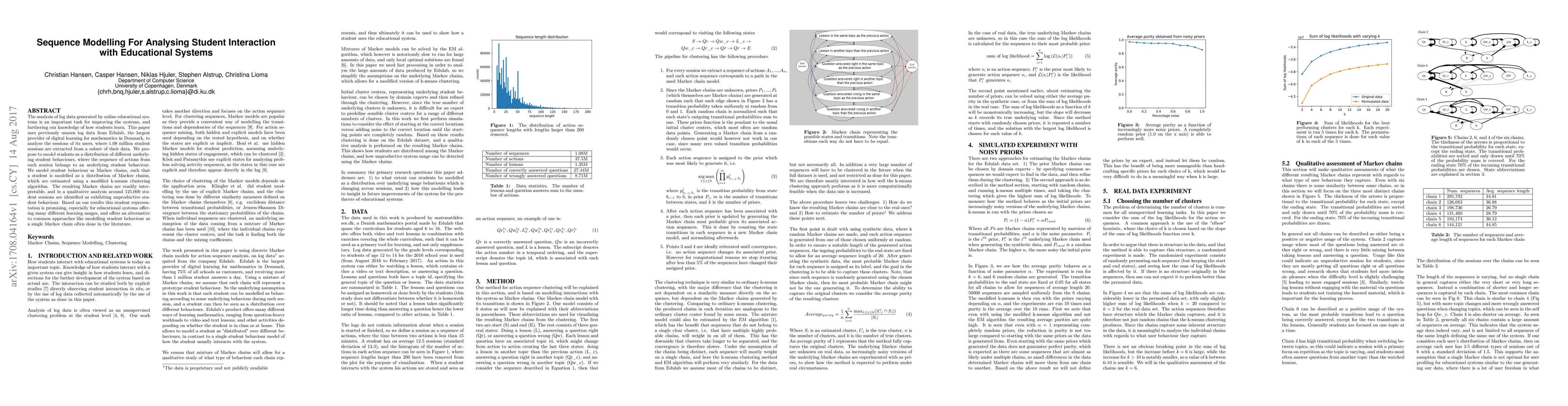 The analysis of log data generated by online educational systems is an important task for improving the systems, and furthering our knowledge of how students learn. This paper uses previously unseen log data from Edulab, the largest provider of digital learning for mathematics in Denmark, to analyse the sessions of its users, where 1.08 million student sessions are extracted from a subset of their data. We propose to model students as a distribution of different underlying student behaviours, where the sequence of actions from each session belongs to an underlying student behaviour. We model student behaviour as Markov chains, such that a student is modelled as a distribution of Markov chains, which are estimated using a modified k-means clustering algorithm. The resulting Markov chains are readily interpretable, and in a qualitative analysis around 125,000 student sessions are identified as exhibiting unproductive student behaviour. Based on our results this student representation is promising, especially for educational systems offering many different learning usages, and offers an alternative to common approaches like modelling student behaviour as a single Markov chain often done in the literature.