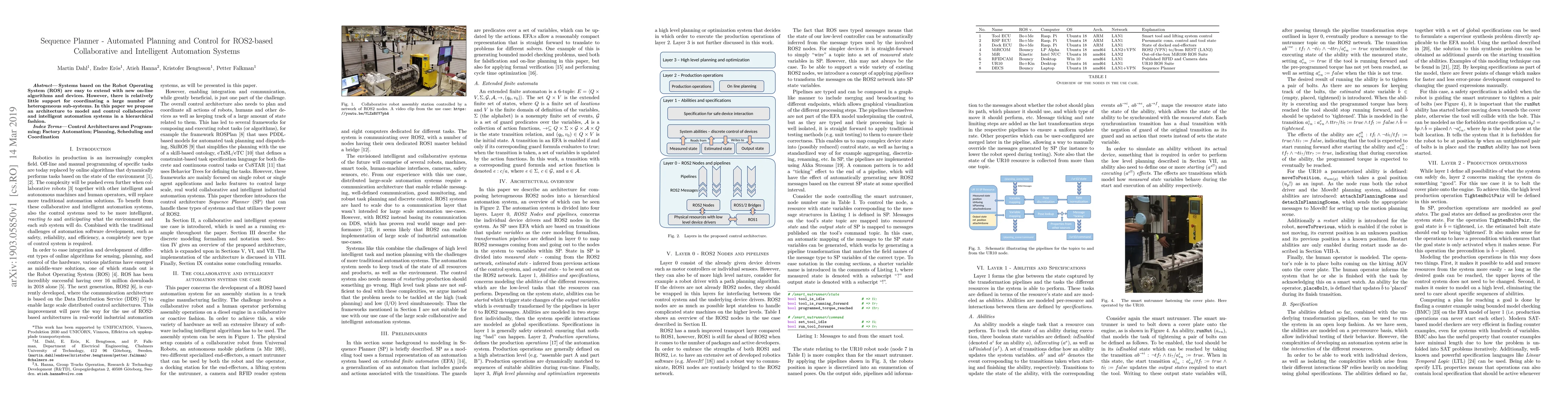 Summary: This paper introduces an architecture called Sequence Planner for automated planning and control in ROS2-based collaborative systems, aiming to enhance coordination among numerous heterogeneous sub-systems in intelligent automation environments. The proposed hierarchical model facilitates better management and integration of new algorithms and devices.