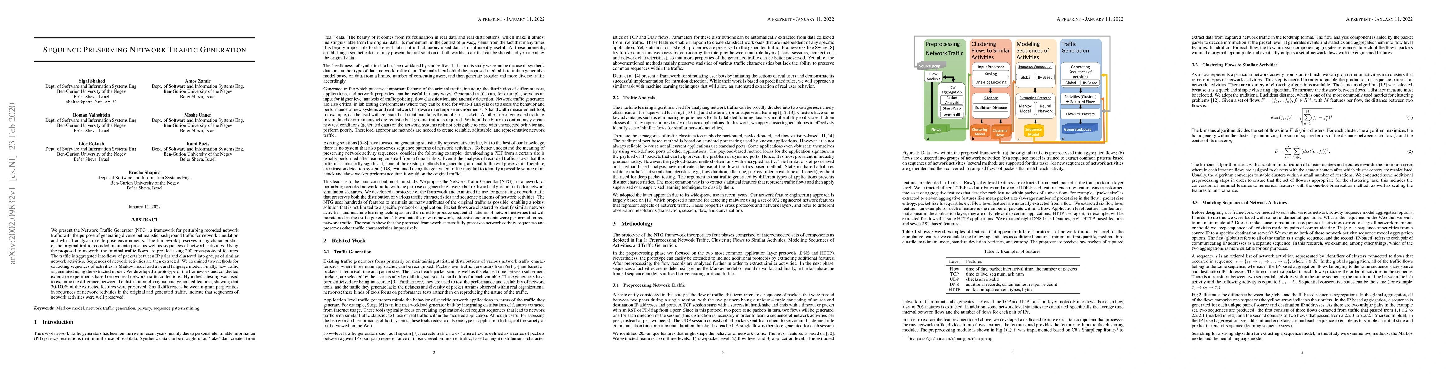 We present the Network Traffic Generator (NTG), a framework for perturbing recorded network traffic with the purpose of generating diverse but realistic background traffic for network simulation and what-if analysis in enterprise environments. The framework preserves many characteristics of the original traffic recorded in an enterprise, as well as sequences of network activities. Using the proposed framework, the original traffic flows are profiled using 200 cross-protocol features. The traffic is aggregated into flows of packets between IP pairs and clustered into groups of similar network activities. Sequences of network activities are then extracted. We examined two methods for extracting sequences of activities: a Markov model and a neural language model. Finally, new traffic is generated using the extracted model. We developed a prototype of the framework and conducted extensive experiments based on two real network traffic collections. Hypothesis testing was used to examine the difference between the distribution of original and generated features, showing that 30-100\% of the extracted features were preserved. Small differences between n-gram perplexities in sequences of network activities in the original and generated traffic, indicate that sequences of network activities were well preserved.