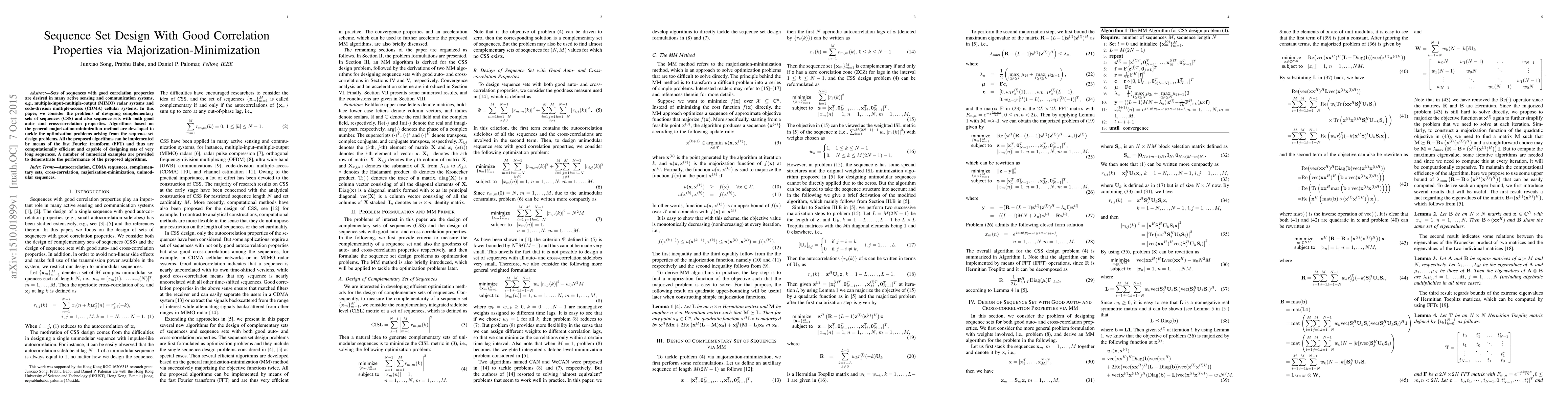 Researchers developed efficient algorithms to design sets of sequences with good correlation properties using majorization-minimization methods, enabling the creation of long sequences for applications like MIMO radar systems and CDMA cellular networks.