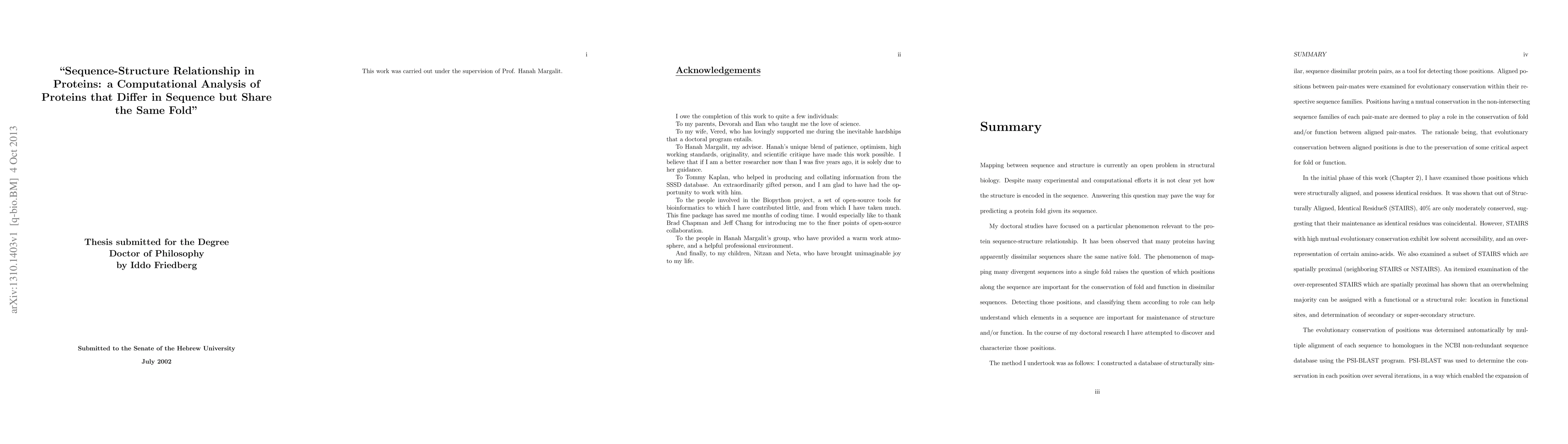 Mapping between sequence and structure is currently an open problem in structural biology. Despite many experimental and computational efforts it is not clear yet how the structure is encoded in the sequence. Answering this question may pave the way for predicting a protein fold given its sequence. My doctoral studies have focused on a particular phenomenon relevant to the protein sequence-structure relationship. It has been observed that many proteins having apparently dissimilar sequences share the same native fold. The phenomenon of mapping many divergent sequences into a single fold raises the question of which positions along the sequence are important for the conservation of fold and function in dissimilar sequences. Detecting those positions, and classifying them according to role can help understand which elements in a sequence are important for maintenance of structure and/or function. In the course of my doctoral research I have attempted to discover and characterize those positions.