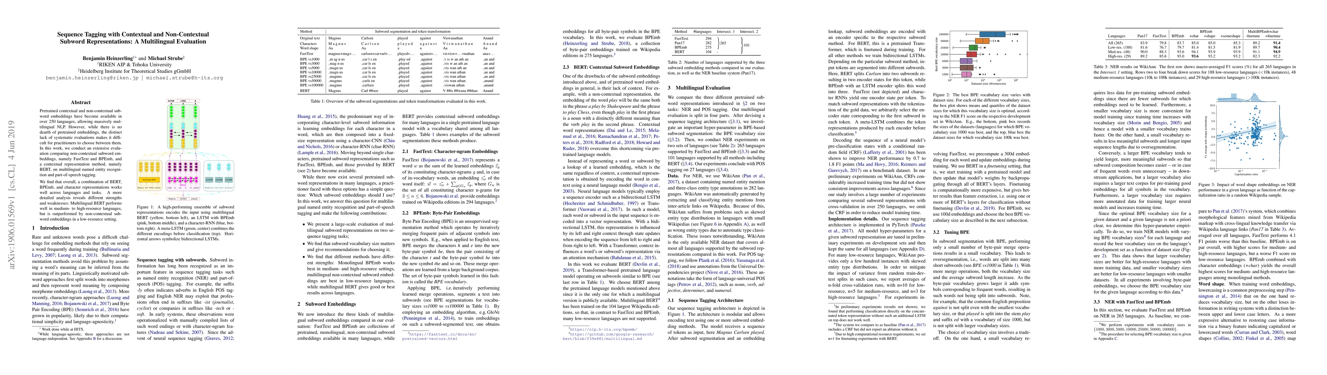 This research compares the performance of non-contextual subword embeddings (FastText and BPEmb) and a contextual representation (BERT) on multilingual named entity recognition and part-of-speech tagging. The study finds that combining BERT, BPEmb, and character representations yields the best results overall, while BERT excels in medium- to high-resource languages but is outperformed by non-contextual embeddings in low-resource settings.