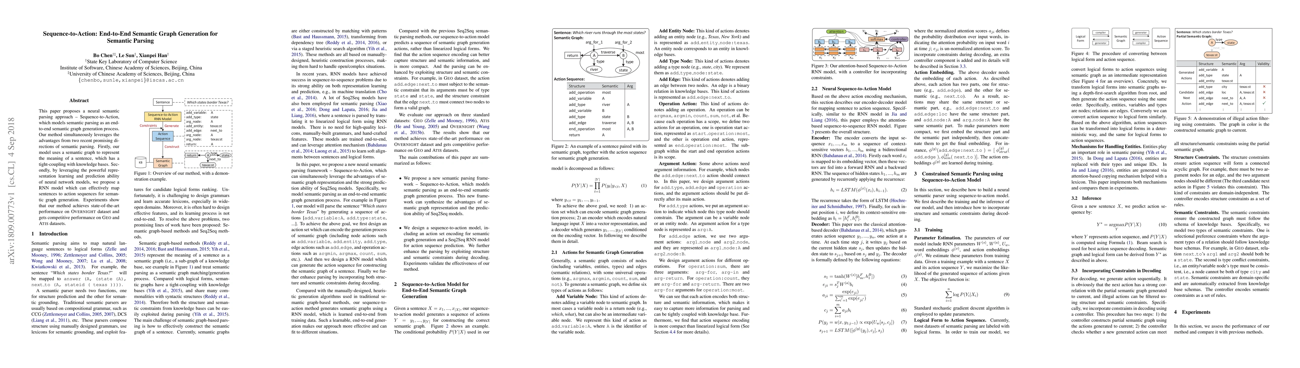 This paper introduces a neural semantic parsing method called Sequence-to-Action, which uses an end-to-end semantic graph generation process to represent sentence meanings and map them to action sequences. The approach achieves state-of-the-art performance on the OVERNIGHT dataset and competitive results on GEO and ATIS datasets.