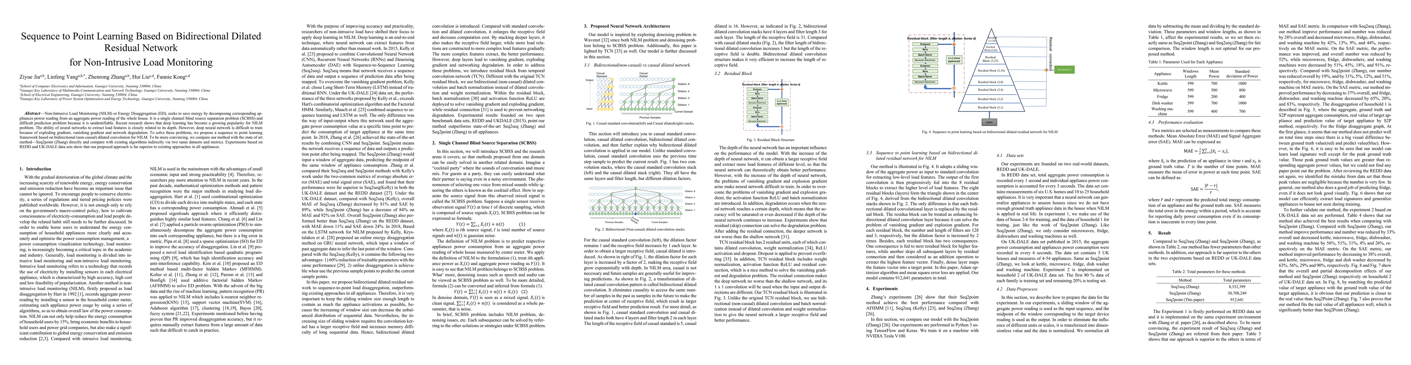 Non Intrusive Load Monitoring (NILM) or Energy Disaggregation (ED), seeks to save energy by decomposing corresponding appliances power reading from an aggregate power reading of the whole house. It is a single channel blind source separation problem (SCBSS) and difficult prediction problem because it is unidentifiable. Recent research shows that deep learning has become a growing popularity for NILM problem. The ability of neural networks to extract load features is closely related to its depth. However, deep neural network is difficult to train because of exploding gradient, vanishing gradient and network degradation. To solve these problems, we propose a sequence to point learning framework based on bidirectional (non-casual) dilated convolution for NILM. To be more convincing, we compare our method with the state of art method, Seq2point (Zhang) directly and compare with existing algorithms indirectly via two same datasets and metrics. Experiments based on REDD and UK-DALE data sets show that our proposed approach is far superior to existing approaches in all appliances.