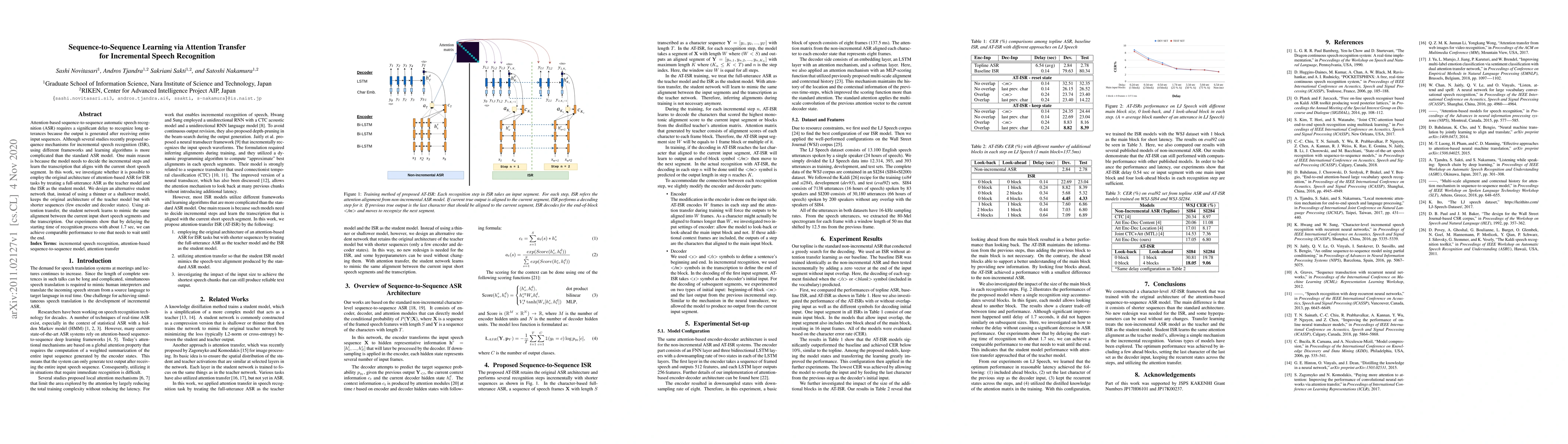 This paper explores using an attention-based sequence-to-sequence model originally designed for full-utterance ASR as a teacher to train an incremental speech recognition (ISR) student model via attention transfer, achieving comparable performance with a delay of 1.7 seconds.