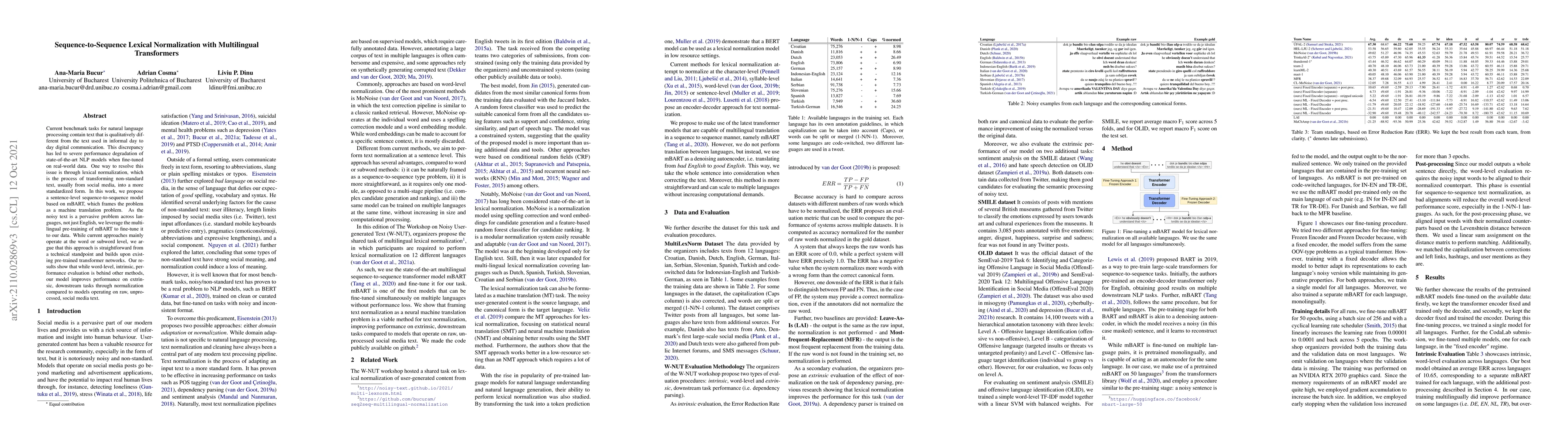 This paper proposes a multilingual transformer-based sequence-to-sequence model for lexical normalization of informal text, framing it as a machine translation task. The model, fine-tuned on mBART, shows improved performance on downstream tasks compared to raw social media text, despite lower intrinsic performance metrics.