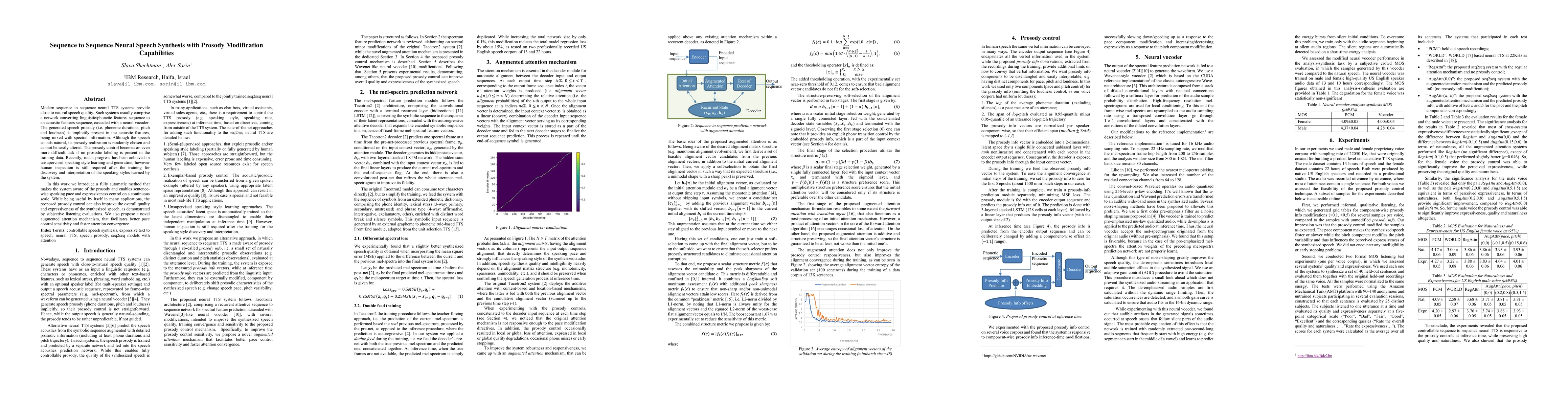 This paper introduces an advanced sequence-to-sequence neural speech synthesis system that includes a method for fully automatic prosody modification, enabling control over speaking pace and expressiveness. The proposed system also features an augmented attention mechanism for enhanced pace control sensitivity and quicker attention convergence.