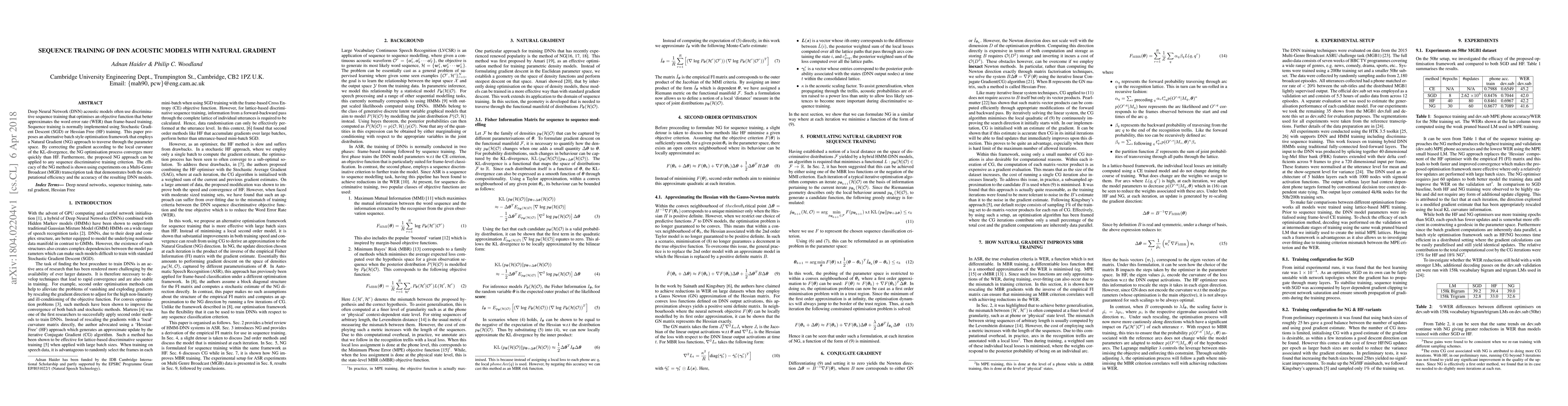 A discriminative sequence training method based on the Natural Gradient approach was proposed