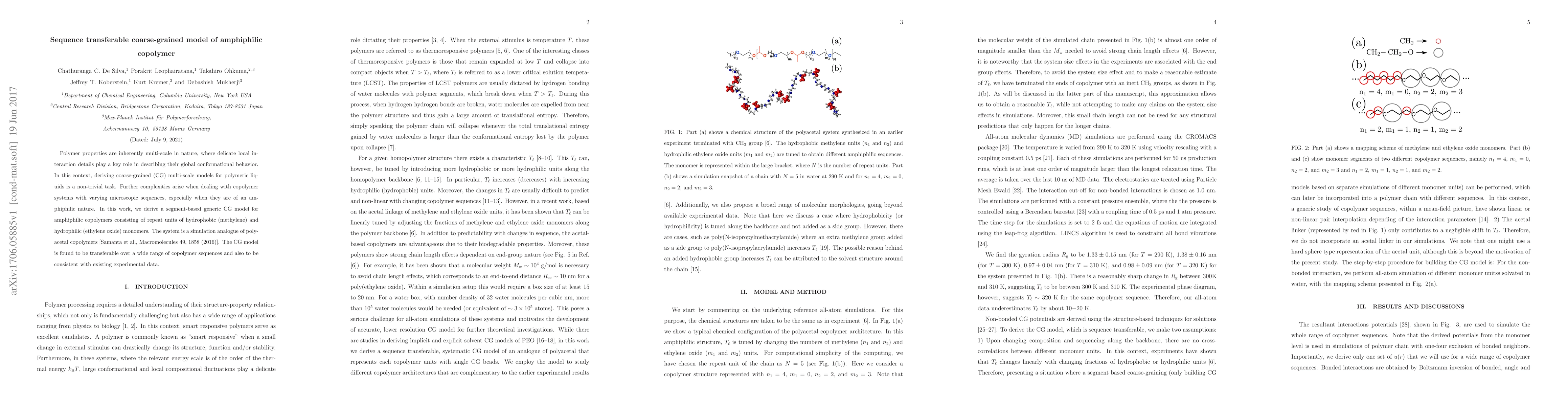 The key novelty of this work lies in the creation of a sequence-transferable CG model for amphiphilic copolymers, which can predict a wide range of conformational properties and be used as a molecular toolbox for investigating diverse polymer architectures.