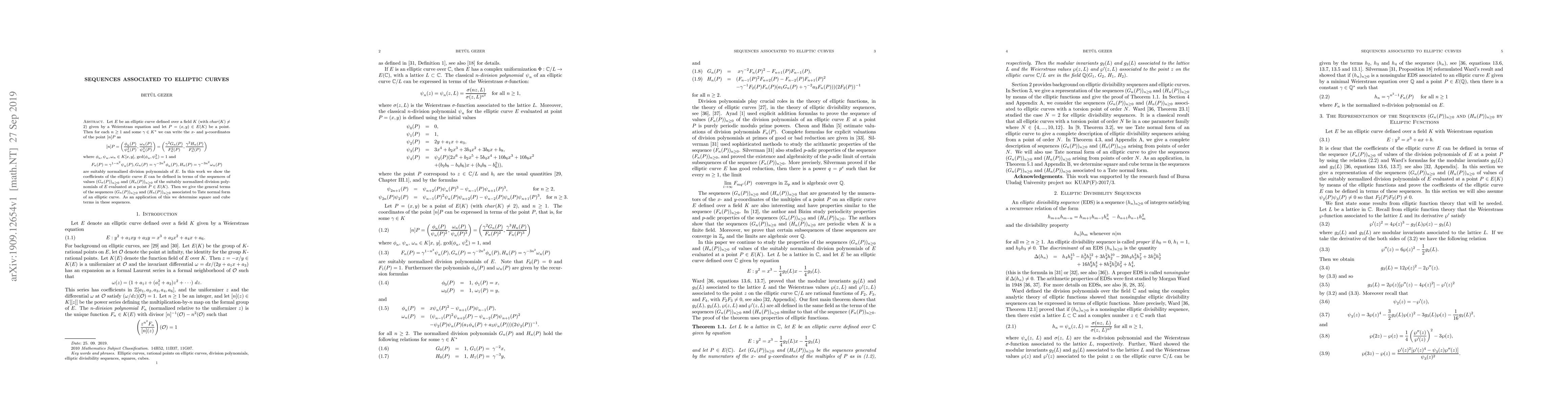 This paper explores the relationship between elliptic curves defined over a field and sequences of division polynomials. It shows that the coefficients of an elliptic curve can be expressed in terms of sequences derived from normalized division polynomials evaluated at a point on the curve, and provides explicit terms for these sequences in the context of Tate normal form.