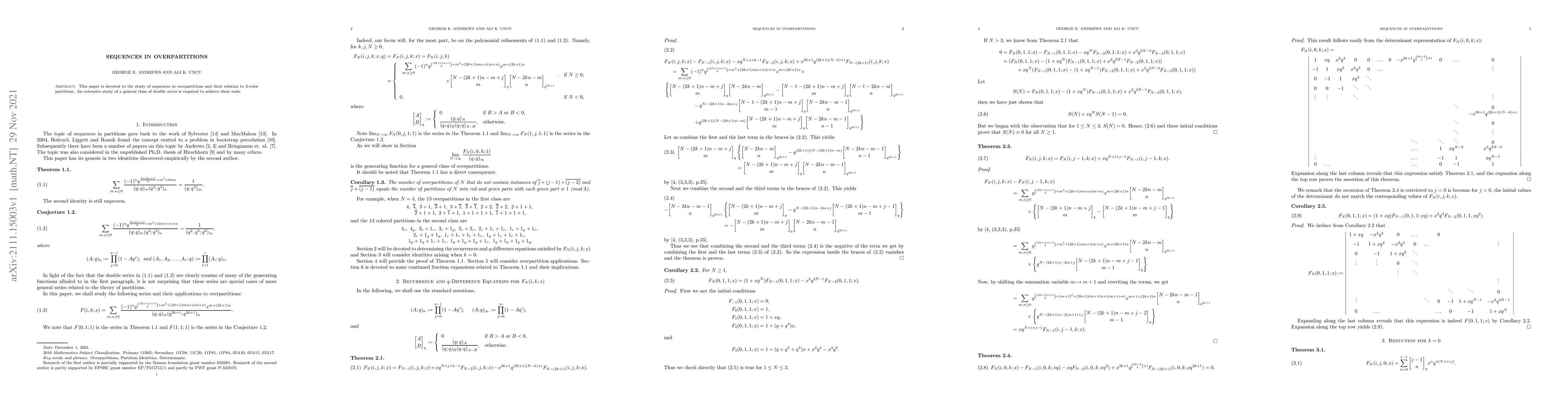 This paper is devoted to the study of sequences in overpartitions and their relation to 2-color partitions. An extensive study of a general class of double series is required to achieve these ends.