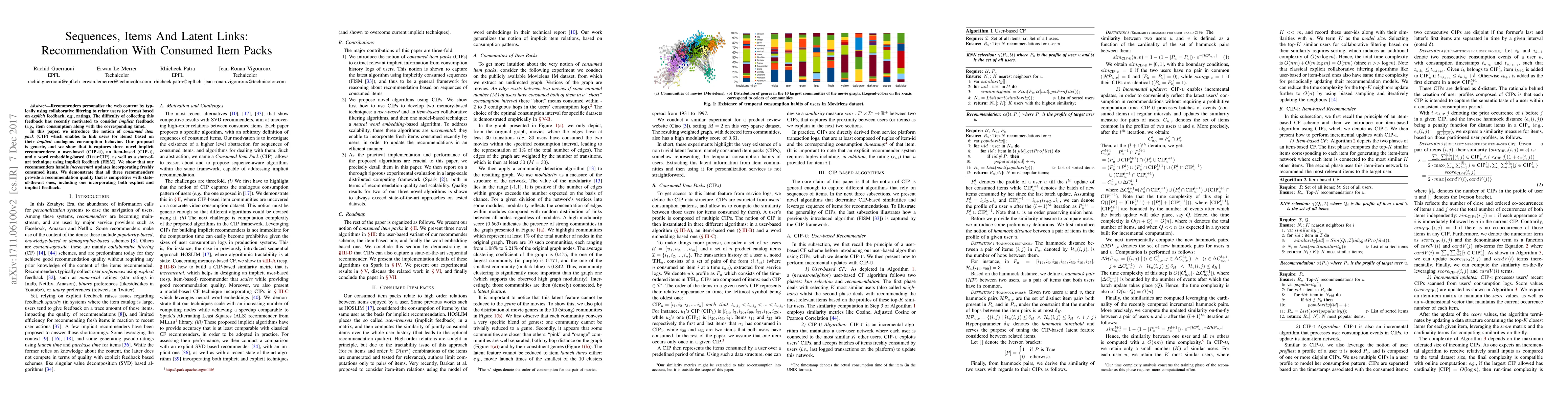This paper introduces a new approach to recommendation systems using consumed item packs, which link users based on implicit consumption behavior, and demonstrates its effectiveness in capturing various recommenders.