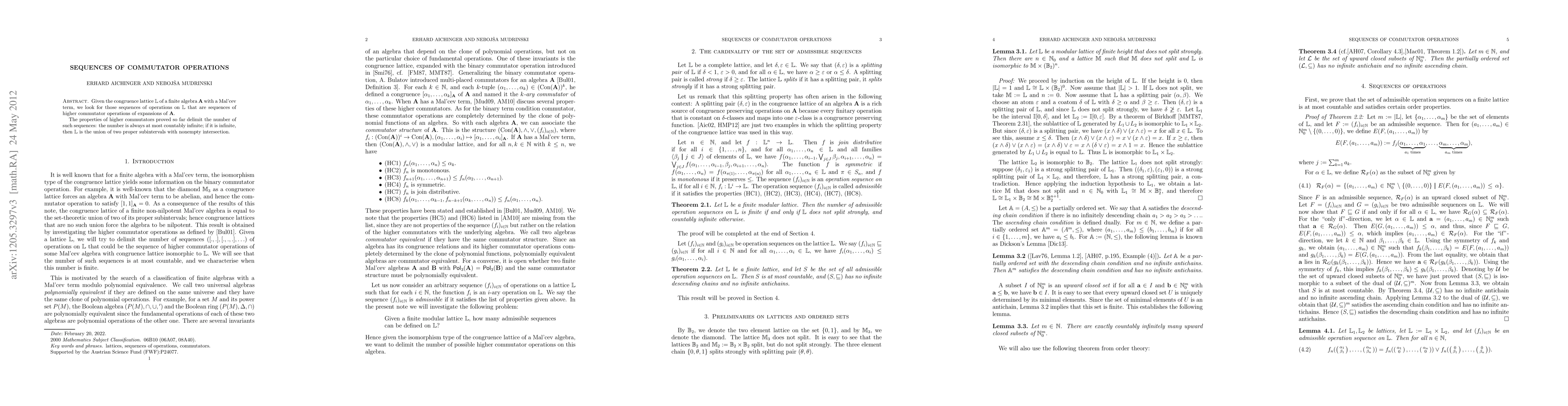 Given the congruence lattice L of a finite algebra A with a Mal'cev term, we look for those sequences of operations on L that are sequences of higher commutator operations of expansions of A. The properties of higher commutators proved so far delimit the number of such sequences: the number is always at most countably infinite; if it is infinite, then L is the union of two proper subintervals with nonempty intersection.