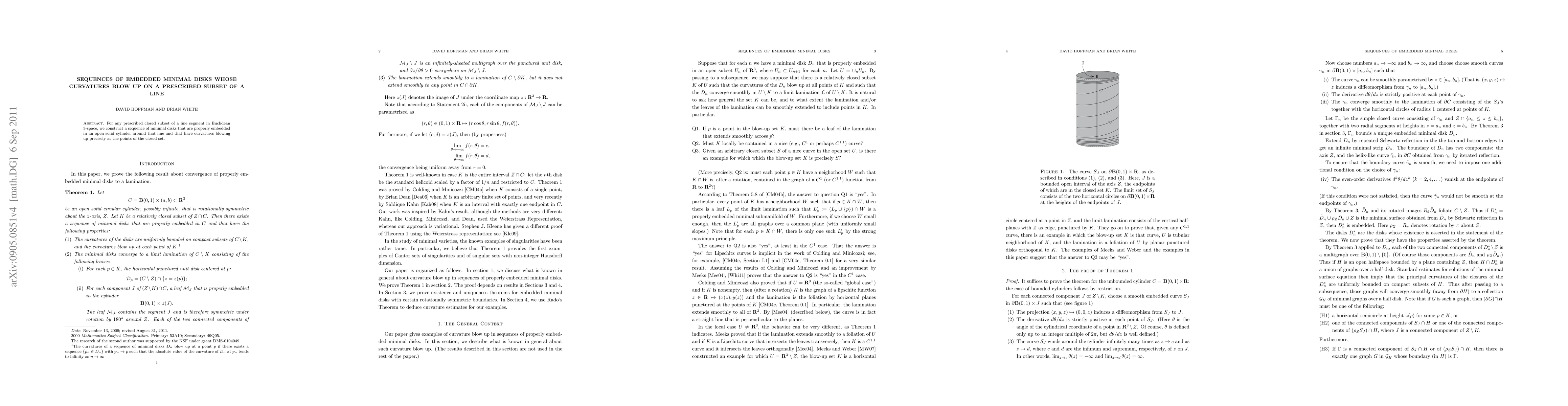 Summary: This paper constructs a sequence of embedded minimal disks in a 3D Euclidean space, each having curvatures that increase dramatically at specified points along a given closed subset of a line segment, within an open solid cylinder surrounding the segment.