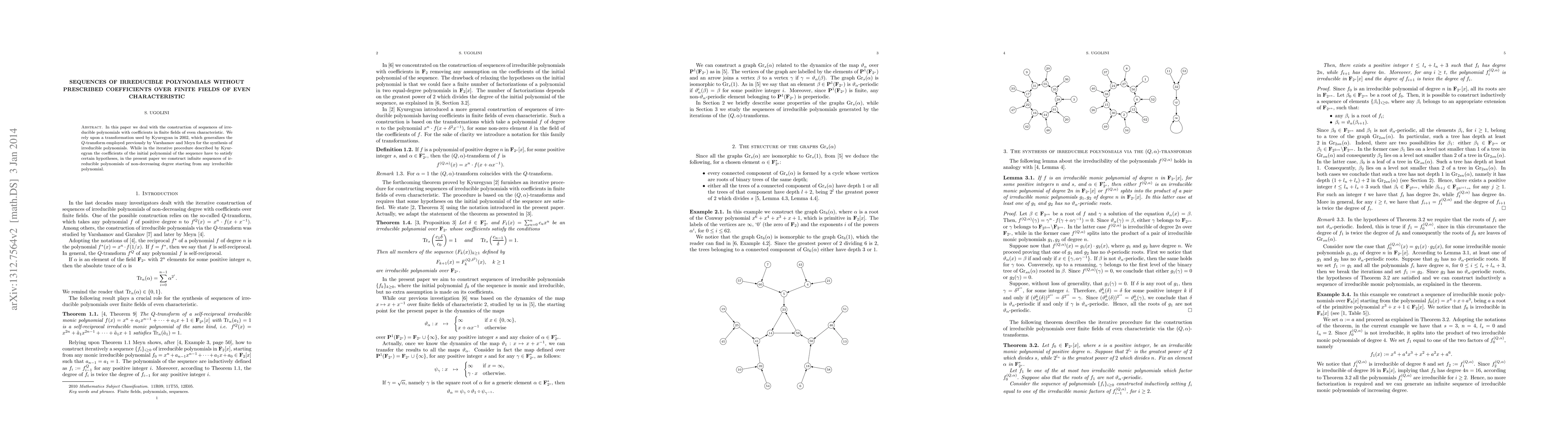 In this paper we deal with the construction of sequences of irreducible polynomials with coefficients in finite fields of even characteristic. We rely upon a transformation used by Kyuregyan in 2002, which generalizes the $Q$-transform employed previously by Varshamov and Meyn for the synthesis of irreducible polynomials. While in the iterative procedure described by Kyuregyan the coefficients of the initial polynomial of the sequence have to satisfy certain hypotheses, in the present paper we construct infinite sequences of irreducible polynomials of non-decreasing degree starting from any irreducible polynomial.