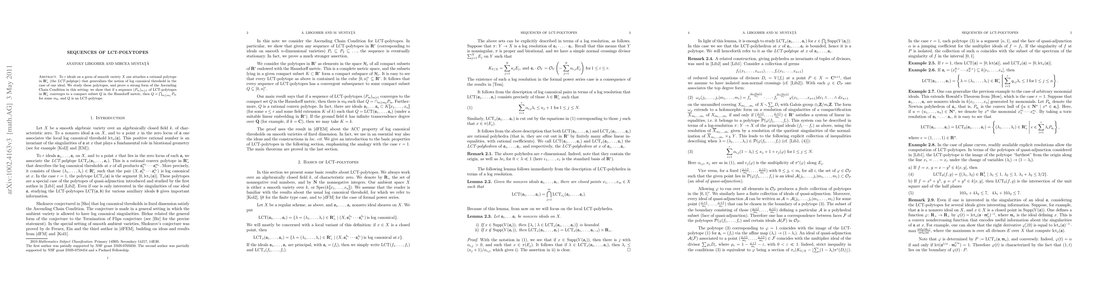 To r ideals on a germ of smooth variety X one attaches a rational polytope in the r-dimensional Euclidean space (the LCT-polytope) that generalizes the notion of log canonical threshold in the case of one ideal. We study these polytopes, and prove a strong form of the Ascending Chain Condition in this setting: we show that if a sequence P_m of such LCT-polytopes converges to a compact subset Q in the Hausdorff metric, then Q is equal to the intersection of all but finitely many of the P_m. Furthermore, Q is an LCT-polytope.