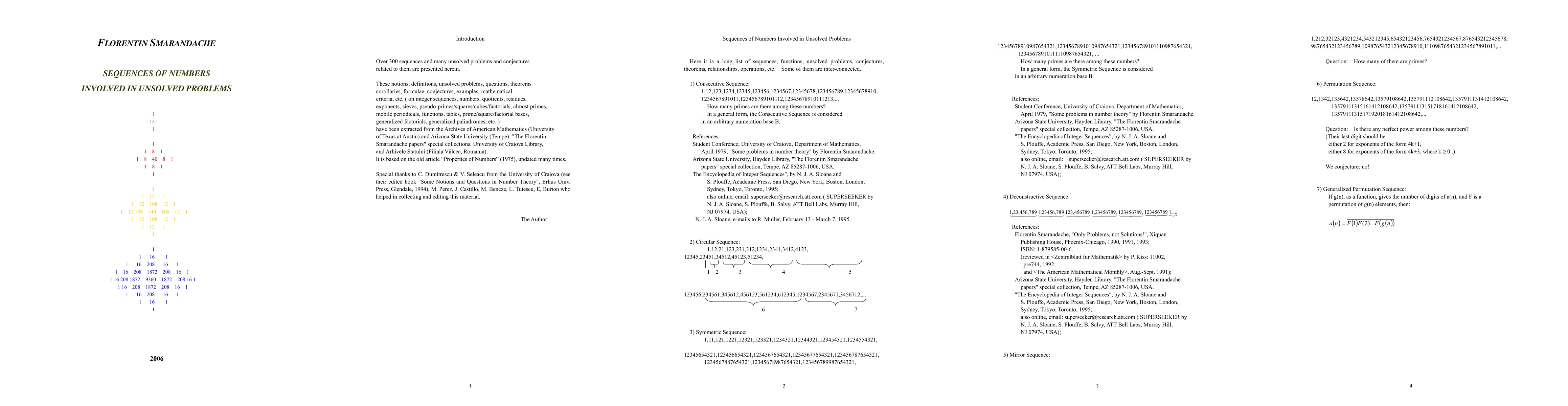 Over 300 sequences and many unsolved problems and conjectures related to them are presented herein together with theorems corollaries, formulae, examples, mathematical criteria, etc. (about integer sequences, numbers, quotients, residues, exponents, sieves, pseudo-primes/squares/cubes/factorials, almost primes, mobile periodicals, functions, tables, prime/square/factorial bases, generalized factorials, generalized palindromes, etc.).